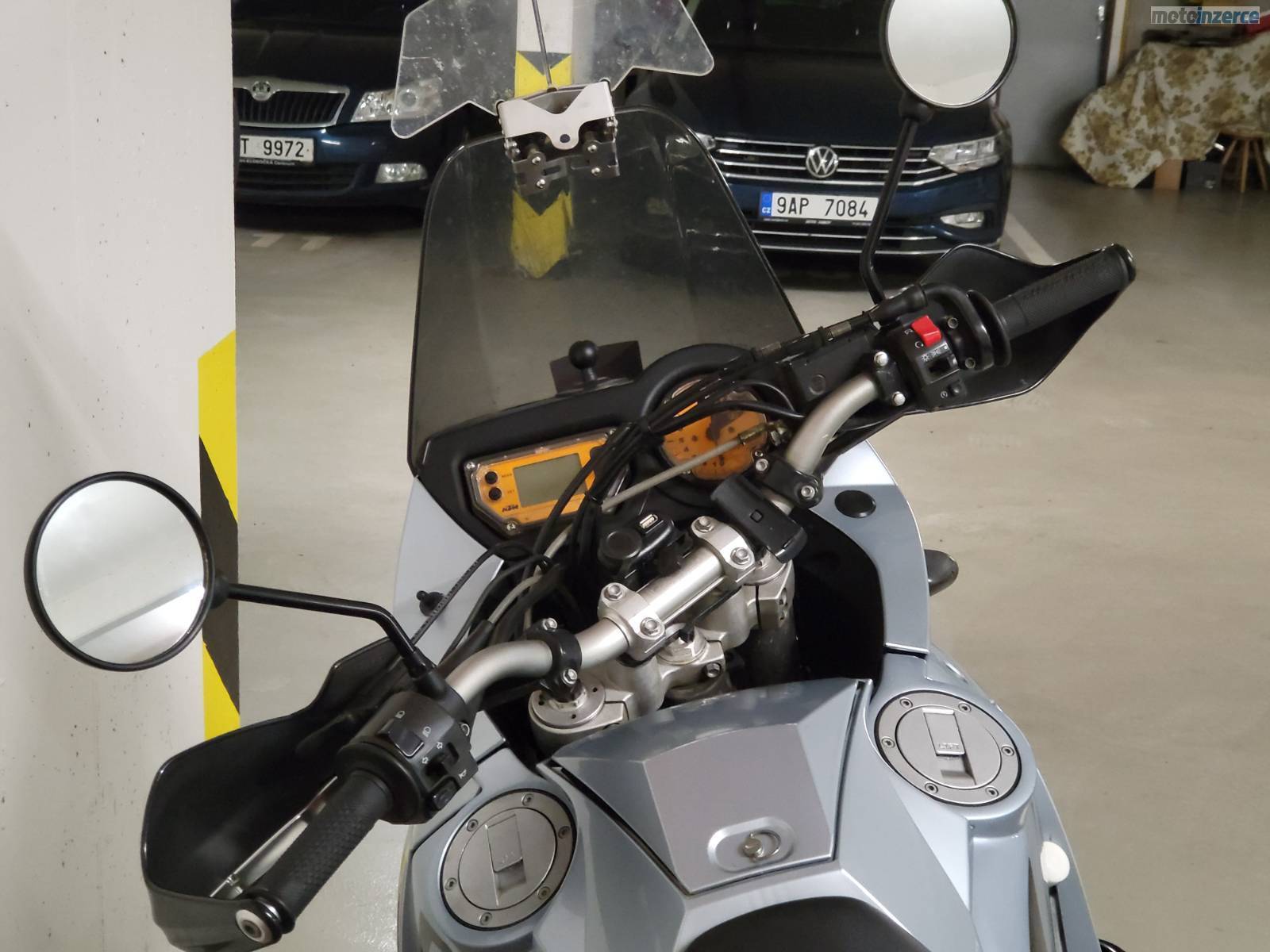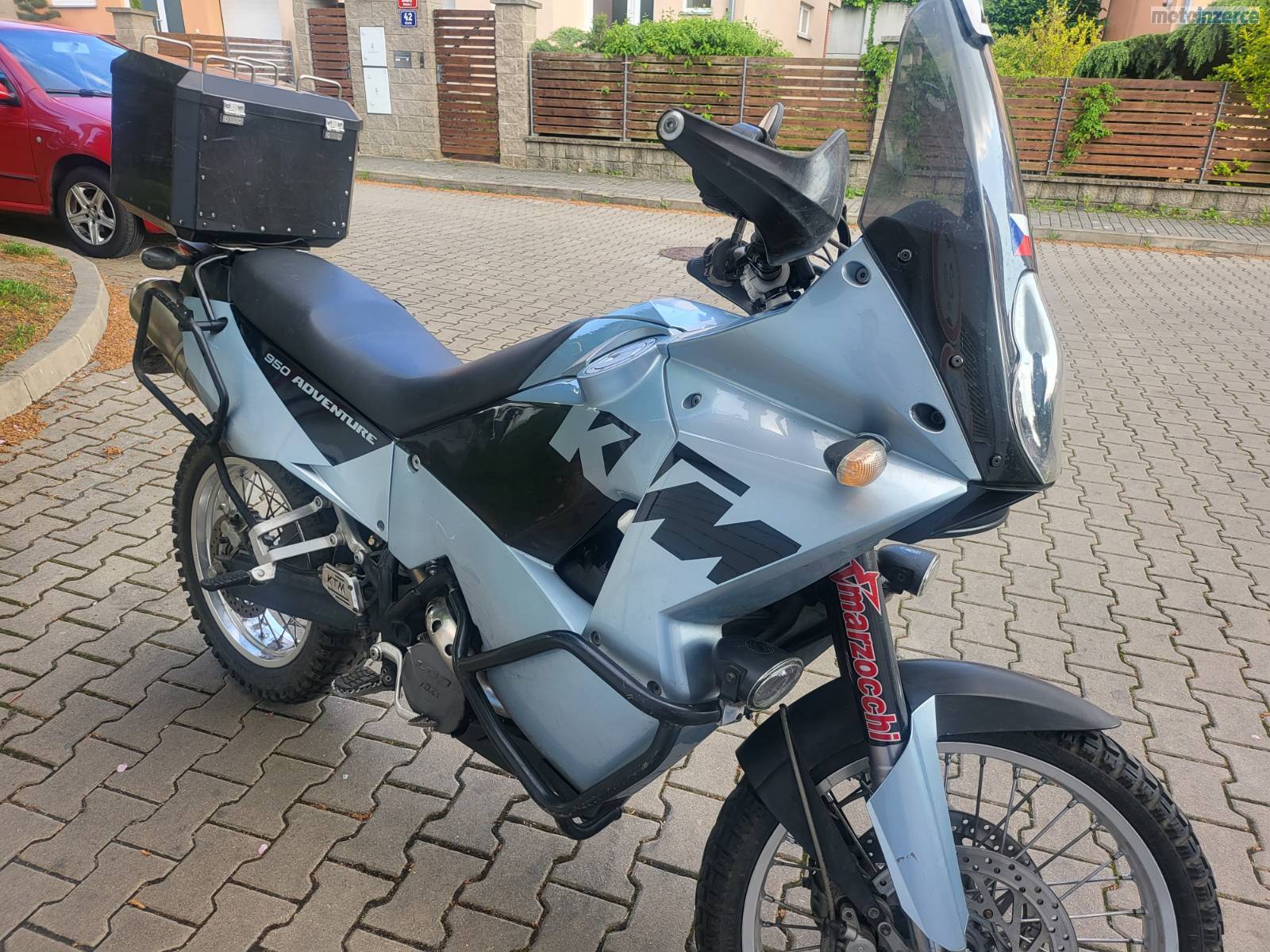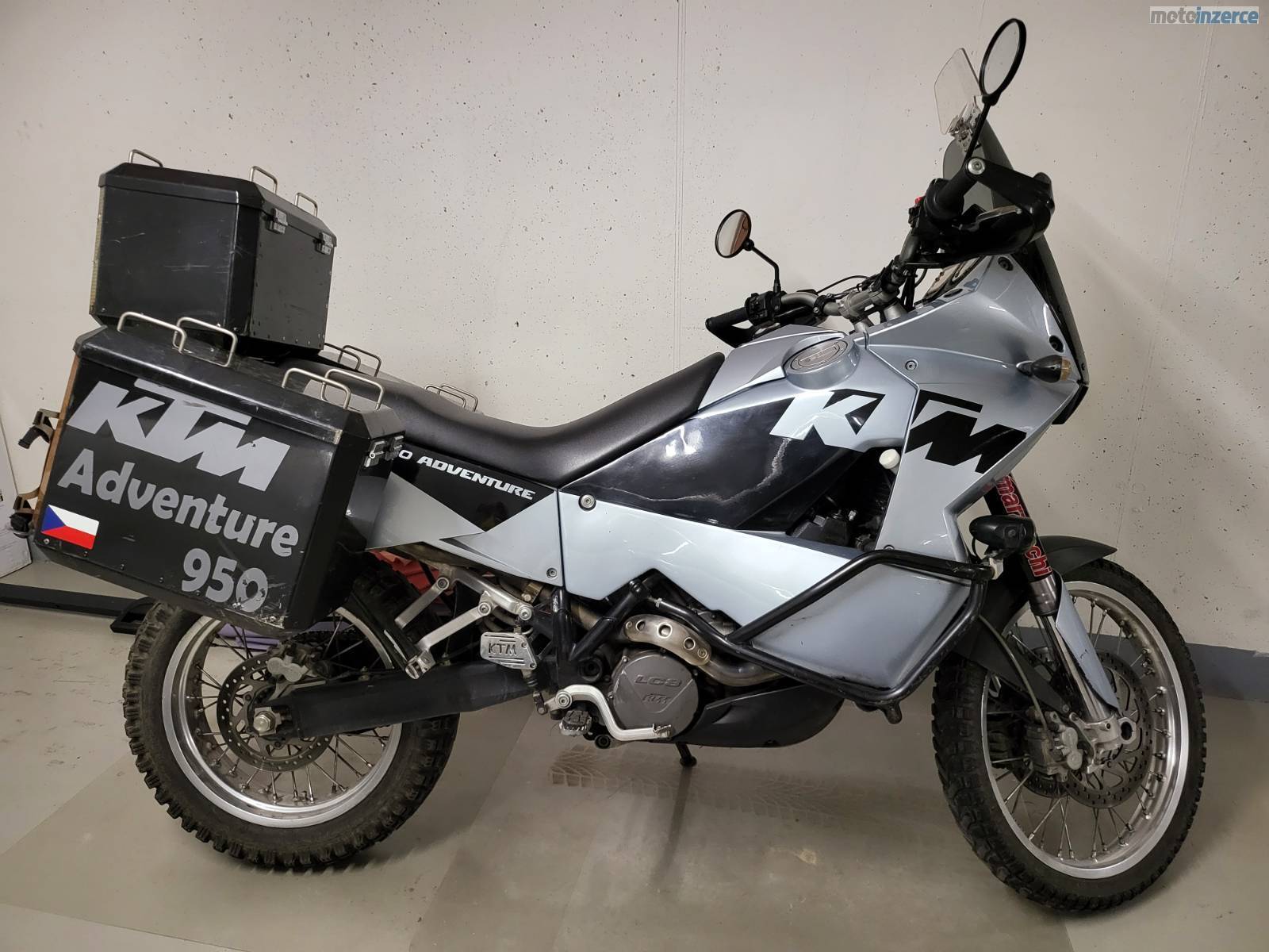 Prodám udržovanou a velice zachovalou KTM 950 Adventure, rok výroby 2003, najeto 57 338 km, čerstvě po servisu a TK (11/2025), po celou dobu garážovaná, mnoho doplňků navíc a čerstvě udělaný servis. Nová gelová baterie, přetěsnění u karburátoru. Doplňky: hliníkové expediční kufry, padáky, přídavná světla, spojková pumpa Oberon (kvalitnější než originál), deflektor plexi na lepší odvod vzduchu, držák na Garmin navigaci, držák na RAM mount, 12V zásuvka, náhradní kryt motoru, náhradní přední a zadní duše, zadní pneu navíc. Motocykl připraven na sezónu/na cestování/na expedici, bez investic. Poctivá motorka odvozená z Dakar speciálů a bez elektroniky = vše bytelné a opravitelné téměř všude. Osobní prohlídka možná v Praze. Důvod prodeje já ji již nevyužiji koupil jsem si KTM SuperDuke GT a tato mi poslední roky více ležela v garáži než jezdila, na 2 moto nemám čas.