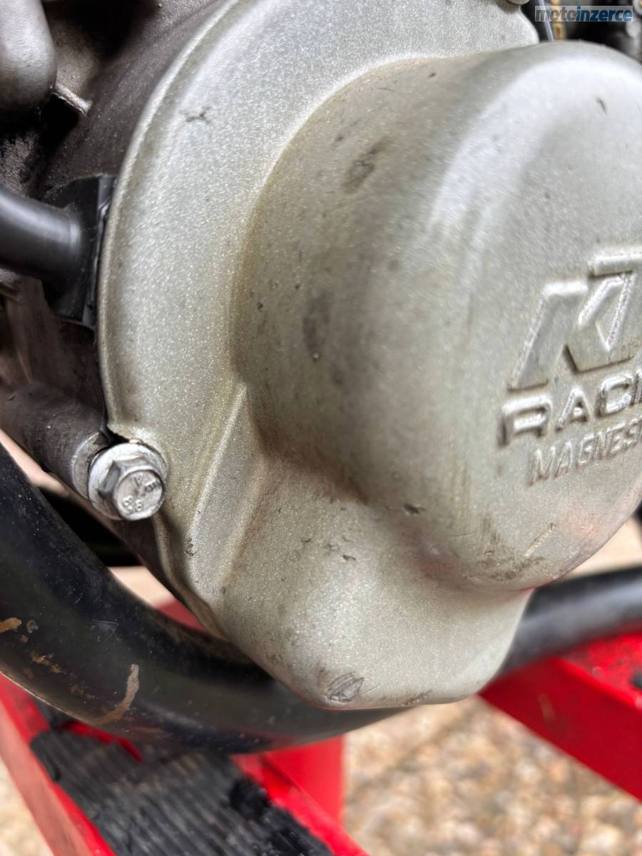 plně funkční. Po výměně pneu přední i zadní. K moto přidám záslepku vzduchového filtru + vzduchový filtr. Na krytu magneta, prasklém dva držáky kolem šroubů viz. foto (drží bez problémů).