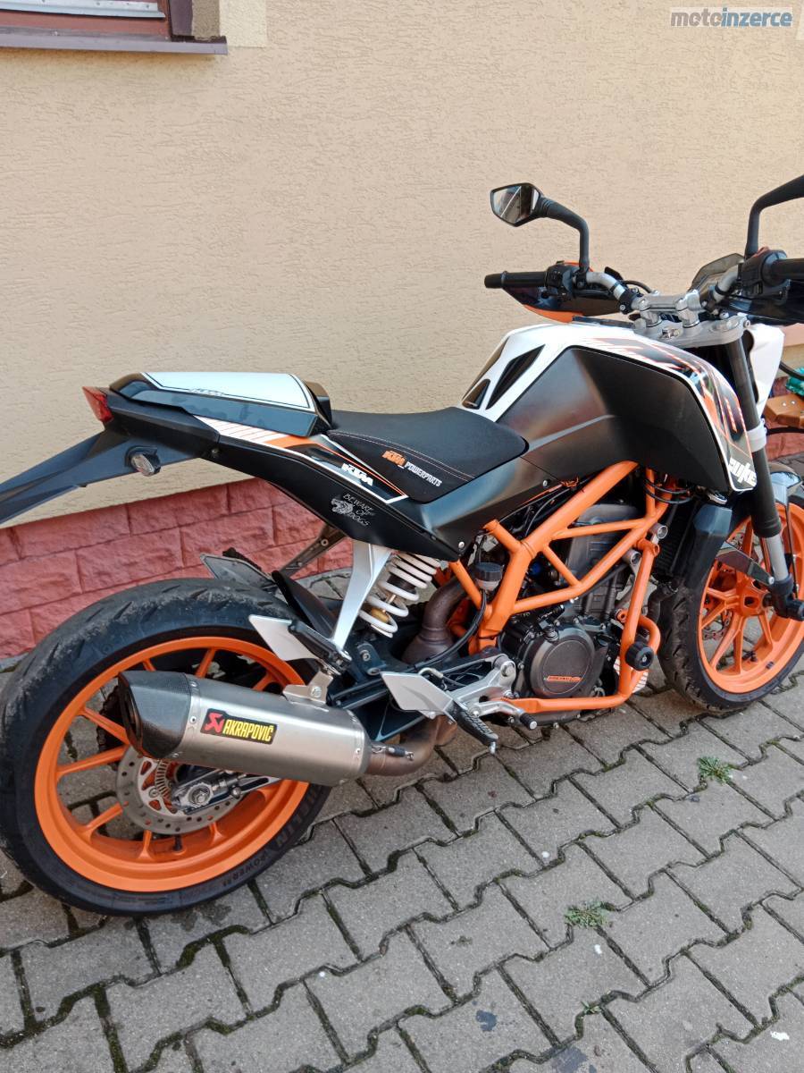 Prodám Duka 390 Akrapovič, do provozu 2014, najeto 36xxx km, 32 kW A2, STK do 5/28 doplňky za cca 25000 Kč, výfuk kompletní Akrapovič homologovaný originál s kartami, padáky, blastry, přední kotouč powerparts, KN filtr, k motorce je ještě sedlo powerparts a or. krovka. Motor po výměně klikové hřídele a vaček s vahadly, výměna oleje a filtrů, výměna čidel teploty a tlaku oleje, nová řetězovka, brzd. kapalina, repas vidlic. Nyni bez investic, vše v pořádku. Jen vážně.