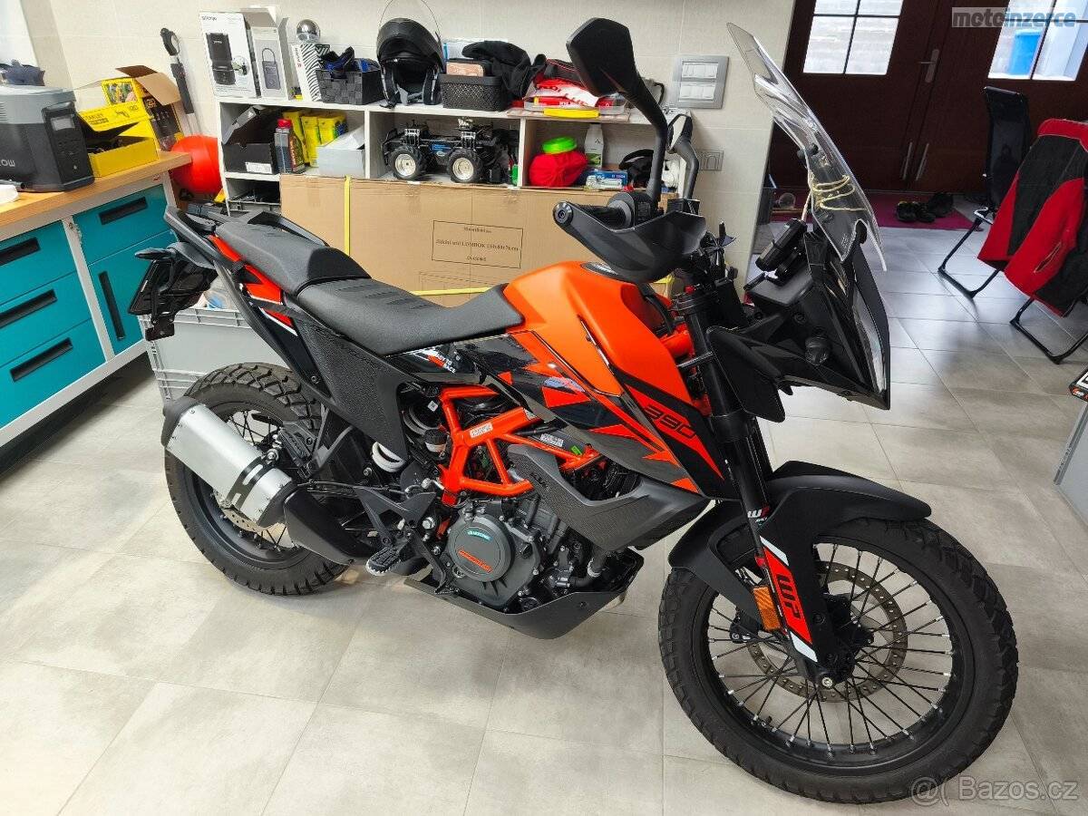 Prodám KTM 390 adventure se 2024. Najeto 2300 km. Moto jako nové kupováno KTM Vlašim. dratěna kola, vyšší Plexi.
