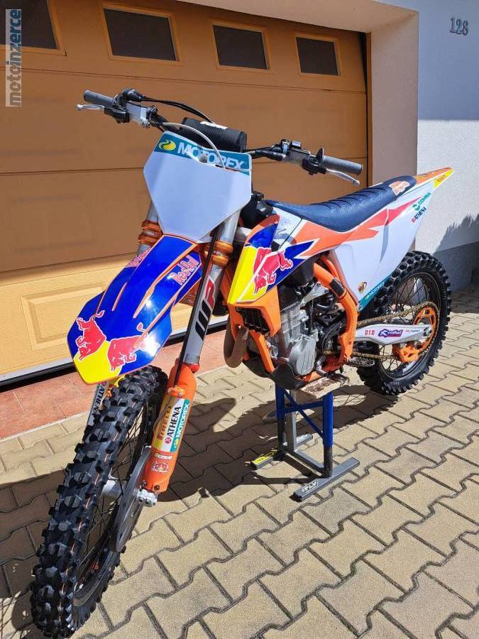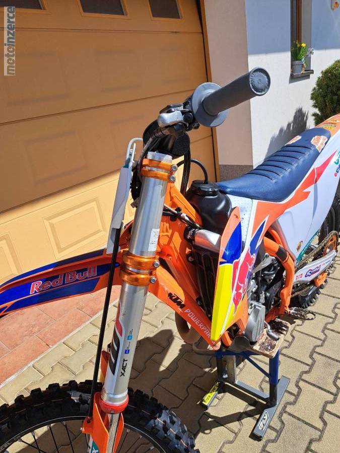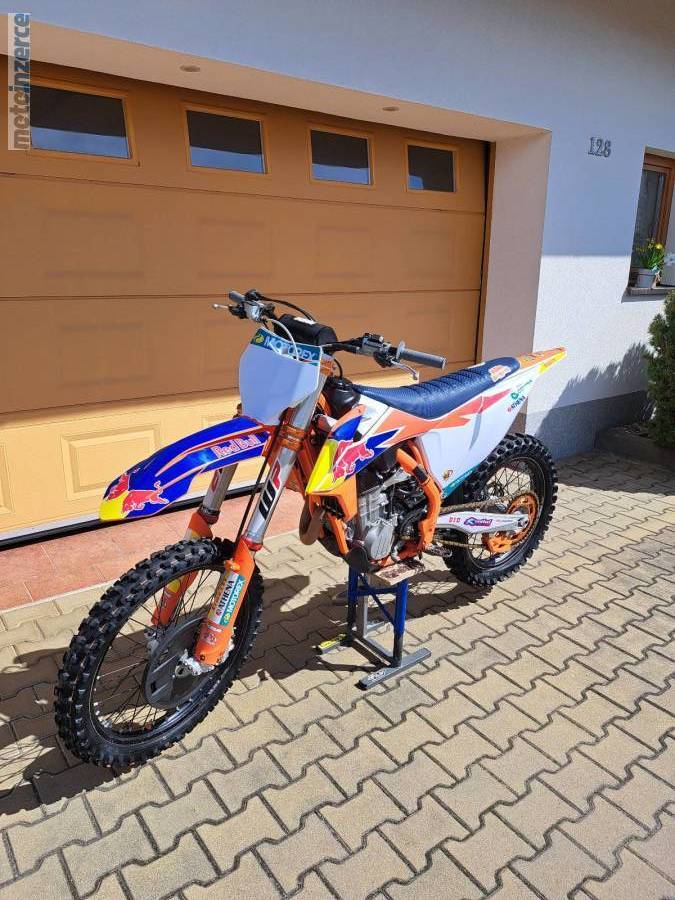 Prodám KTM SX-F 450 r.v. 2020. Edice Cairoli. Koupená v roce 2024 na podzim, měla 29 mth vše bylo původní nyní najeto 106 mth. Naposled jela v září 2025. Vceně je stojan, kanystr, zadní pneu, pumpička na tlumiče. Důvod prodeje zranění konec závodění.