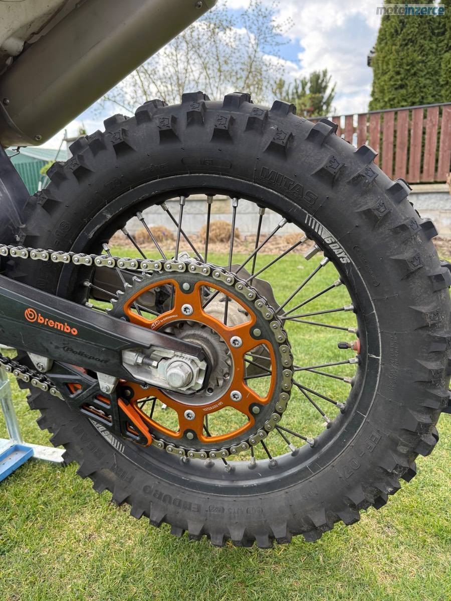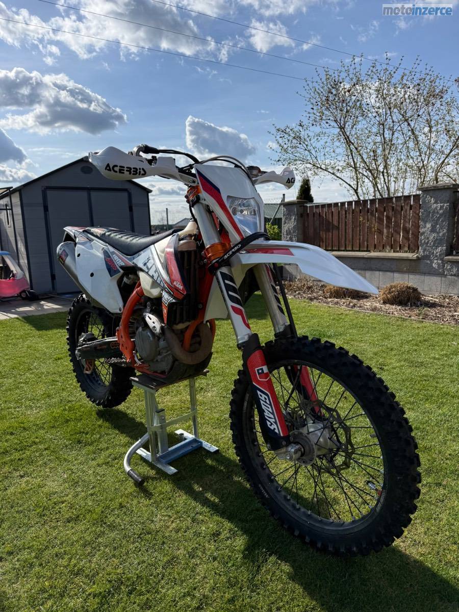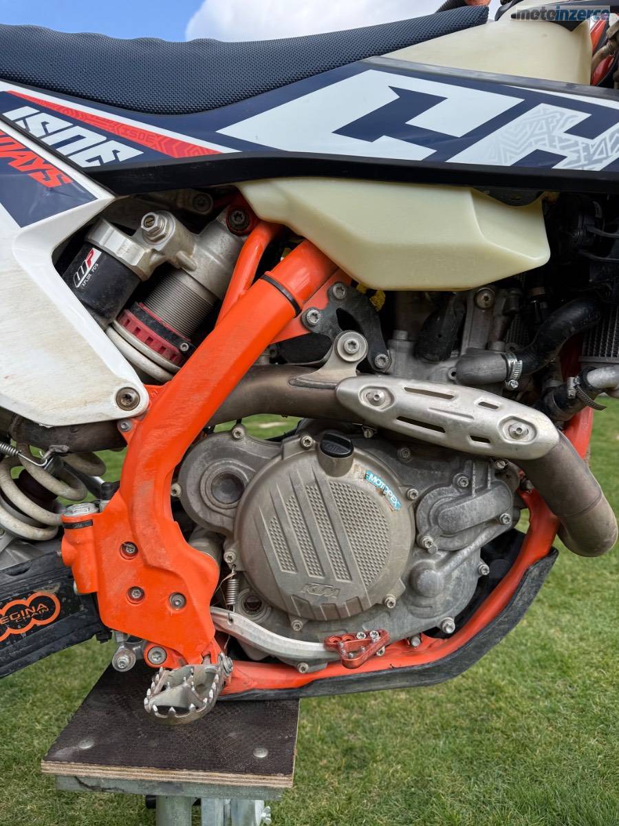 Z důvodu nevyužití prodám velmi zachovalou KTM 450 EXC-F v edici Six Days, ježděnou pouze jako hobby ( v lese a na poli), nyní nově po STK, výměně oleje, filtru, brzdové kapaliny a přední pneu, zadní 70%. Součástí koncovka Akrapovič, chrániče rukou Acerbis, zvedací a tahací popruhy Acerbis, originální koncovka výfuku, držák RZ, blinkry, zrcátka. Prosím pouze vážní zájemci!!! Při rychlém jednání možná sleva.
