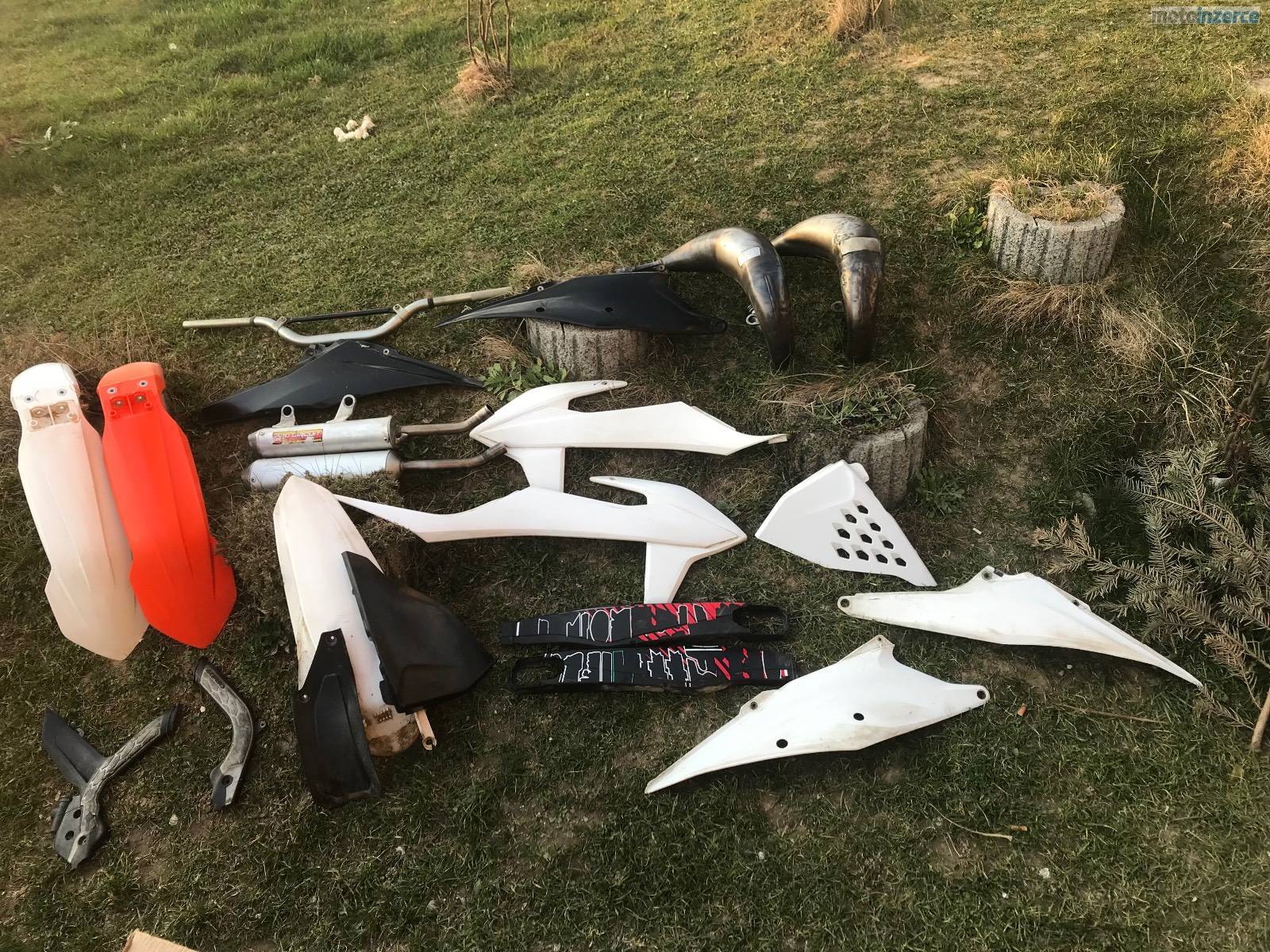 Přidám sadu bílých plastů, oranžový př. Blatník, krytky na kyvku a další. Pak ještě 2 koncovky, 2 kolena, těsnění, náhradní planžety do klapek, olej a další viz foto.
