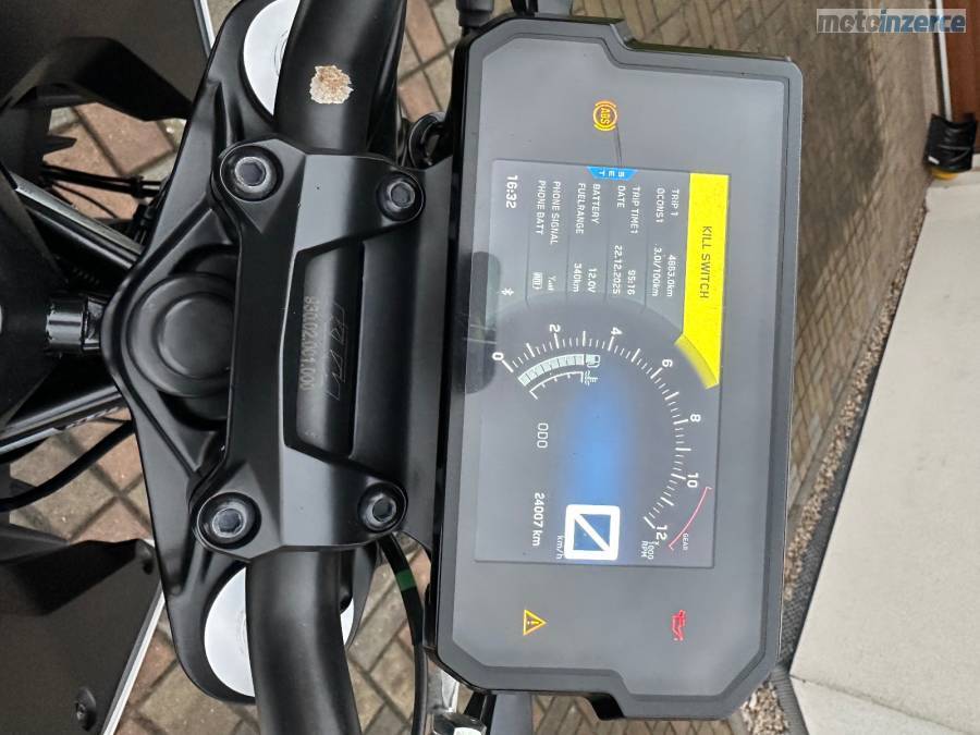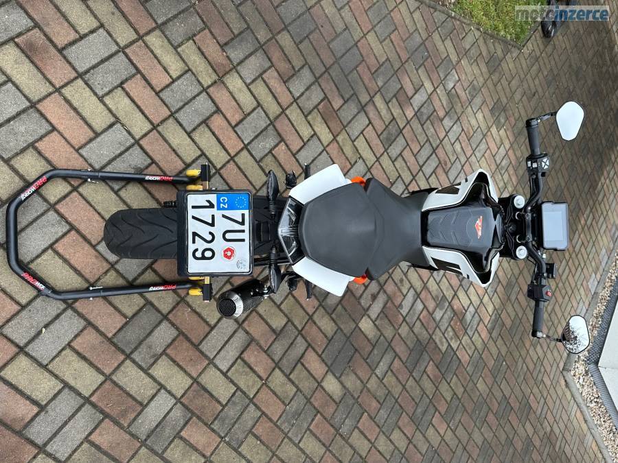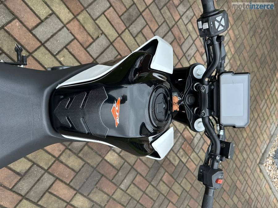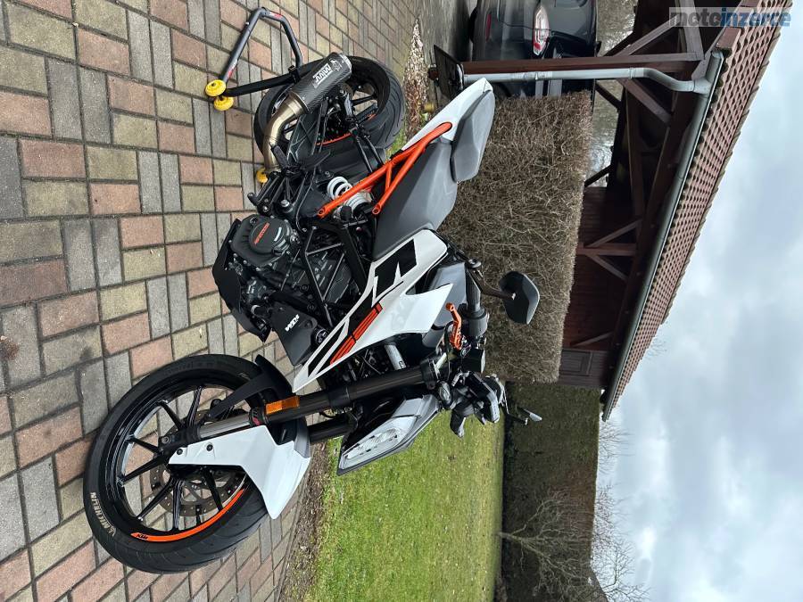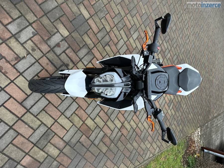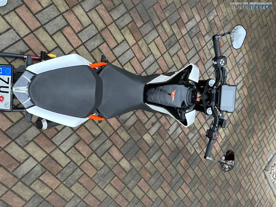 Jsem druhý majitel, motorka je garážovaná, nebouraná, nájezd 24400 km ale pokud bude dobré počasí tak se ještě svezu do školy, 2 klíčky, STK do 5/28, olej + filtr měněn vždy max po 5000 km nebo po sezóně, aktuálně je vyměněn. Na začátku minulé sezóny jsem dával nové pneumatiky značky Michelin, NGK iridium svíčku, řetězovou sadu a nechával jsem přetěsňovat přední tlumiče v KTM. Motorka má KTM MY RIDE, ABS, výfuk značky Mivv, hezčí zrcátka, páčky a kratší držák SPZ. Všechny originální díly dám k motorce. Důvod prodeje přechod na silnější.