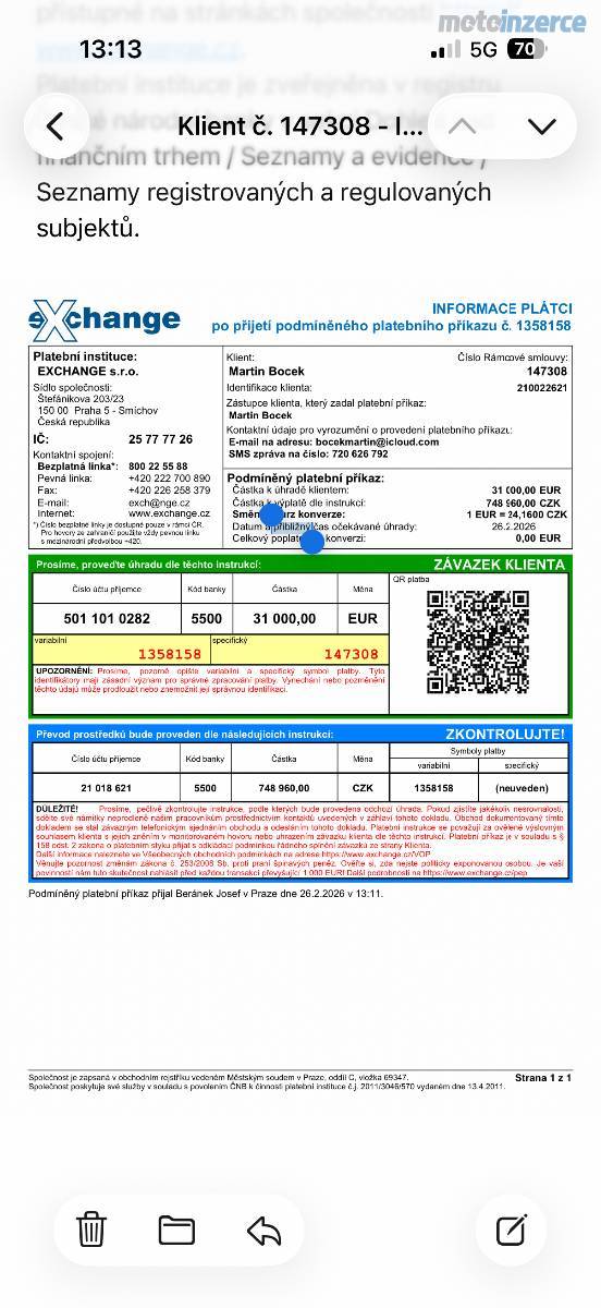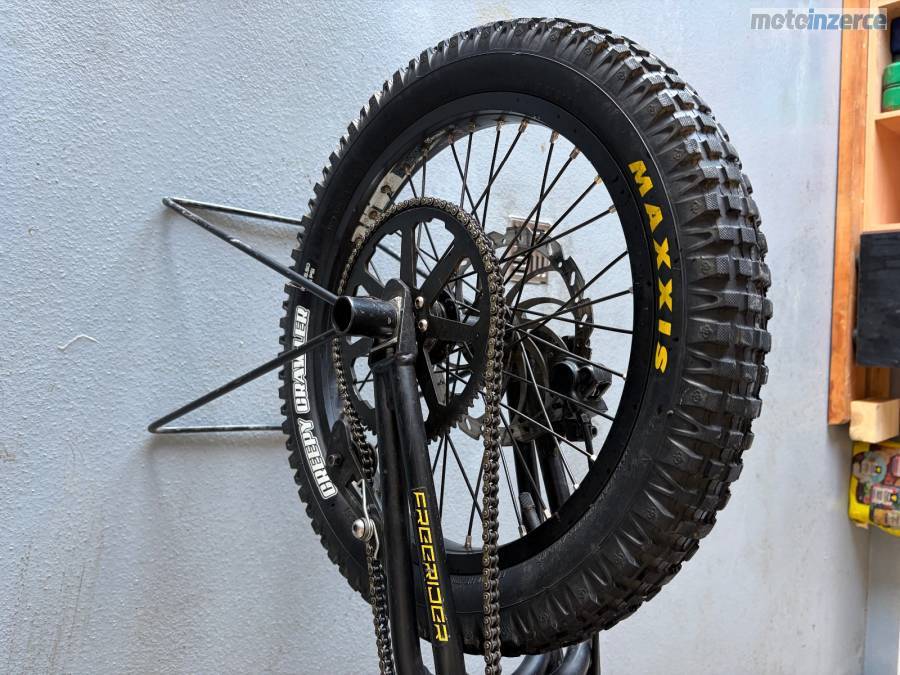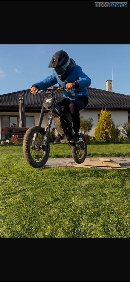 Osazeni: motor 8 kW, kola 20” možnost nasadit na 24”, baterie ???? bez ztráty kapacity, zánovní kotouče a desky, taktéž řetěz.
