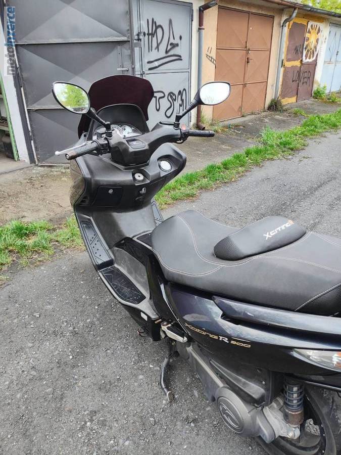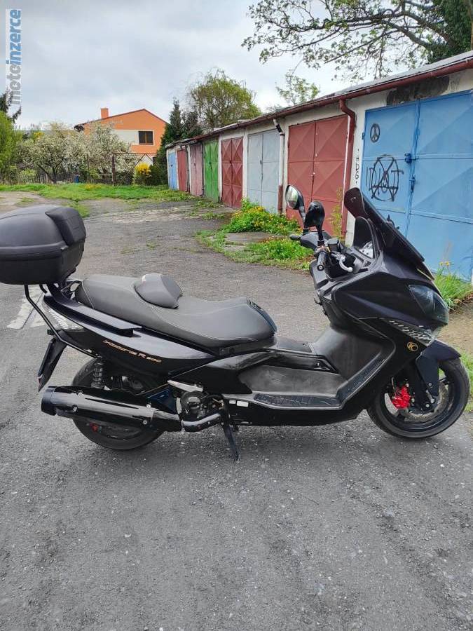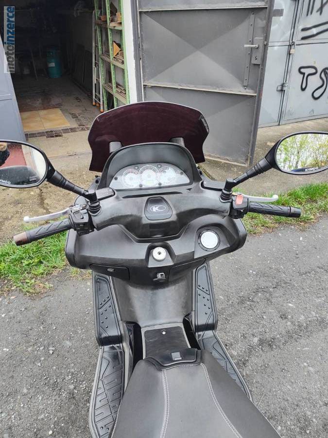 Prodám skútr Kymco Xciting 300 iR r. v 2009 model po faceliftu, výkon 17,5 kW, 23,5 Nm kapalinou chlazený čtyřtaktni motor s přímým vstřikováním, spolehlivý, drobné oděrky z provozu, LED denní svícení, ABS, dvojité kotouče vpředu, spotřeba cca 3,3 l/100 km, po výměně oleje v motoru, variátoru, nový vzduchový filtr, nové válečky variátoru, nové vymezovací podložky, 2 klíče, originál zadní kufr, skutr má český TP, STK v 06/2025 na 4 roky, při rychlém jednání dohoda