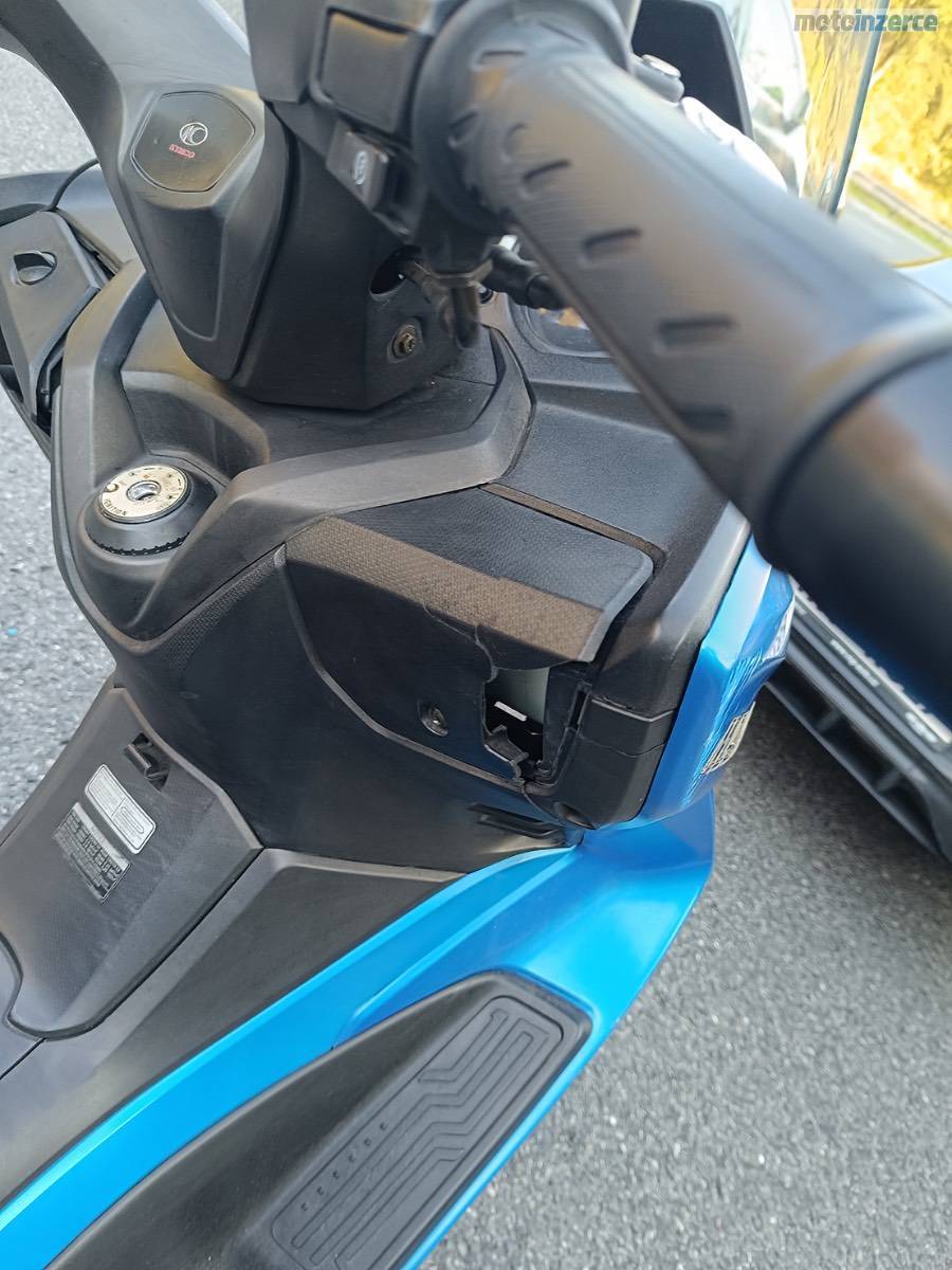 Skútr je pojízdný, ale přední kolo při otáčení dře o plast.
