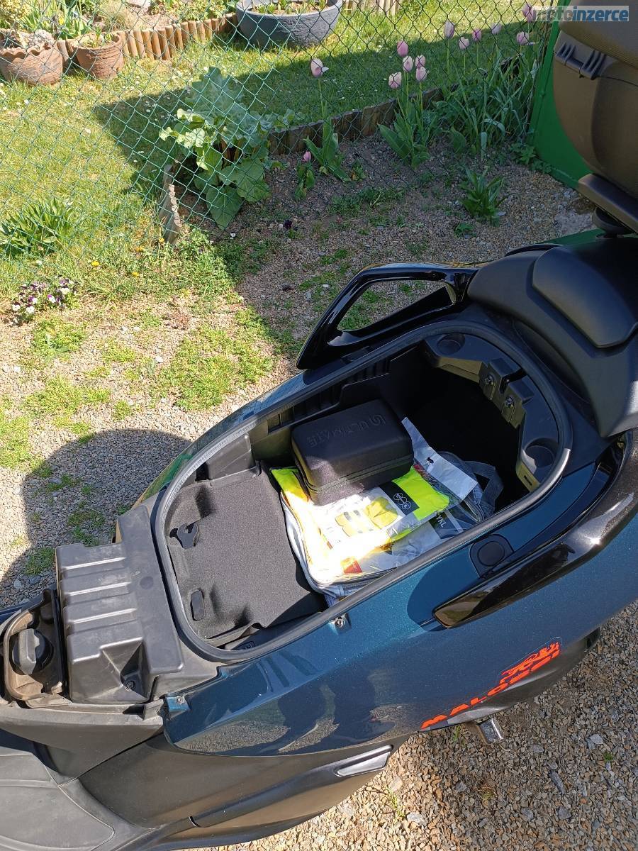 Výbava: Bezkontaktní startování, elektronická parkovací brzda, systém aretace náklonu (stojí bez podpory nohou).