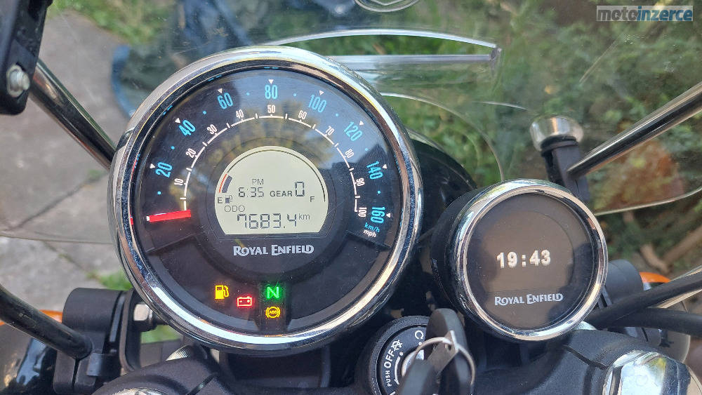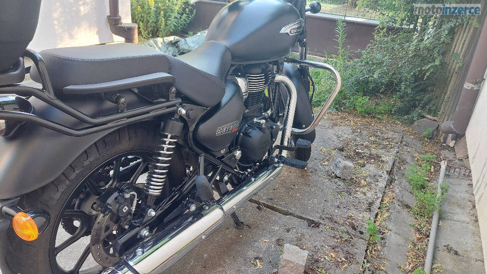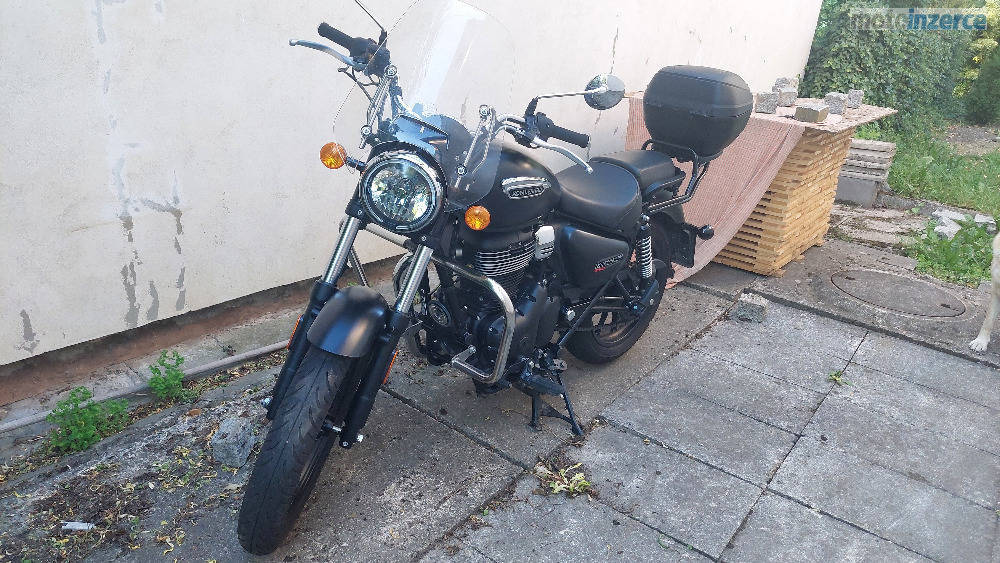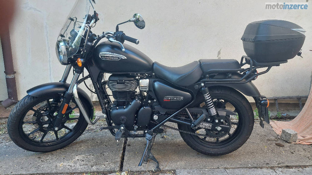 Prodám motocykl RE Meteor 350 Stellar Black. Perfektní stav. Navíc: turistické plexi, vyhřívaná řidítka (Daytona), padáky, nosič zadního kufru, menší kufr Givi monolock, opěrka spolujezdce (na obrázku není, dá se namontovat místo zadního nosiče). Servisní knížka, servisované ve Vintage Garage (dvě prohlídky 500 a 5000km).