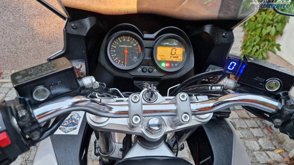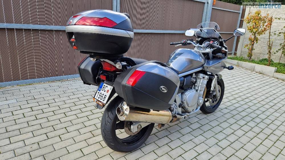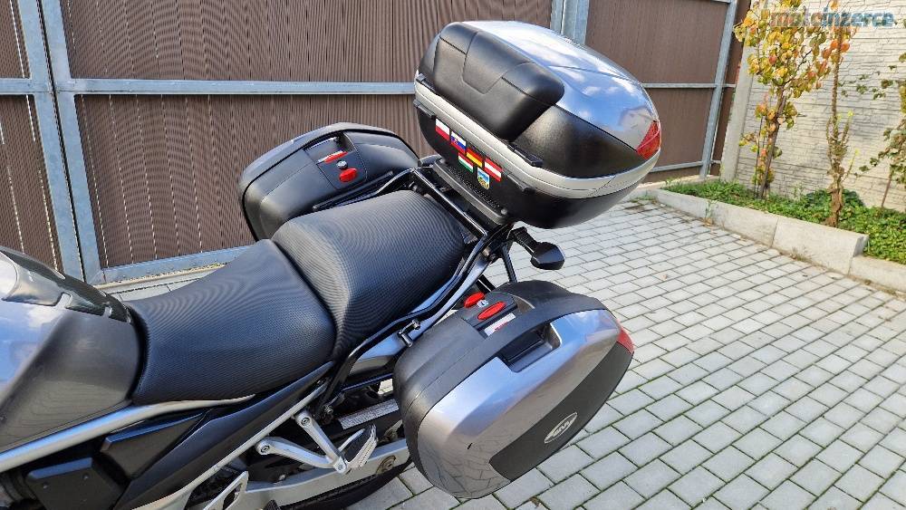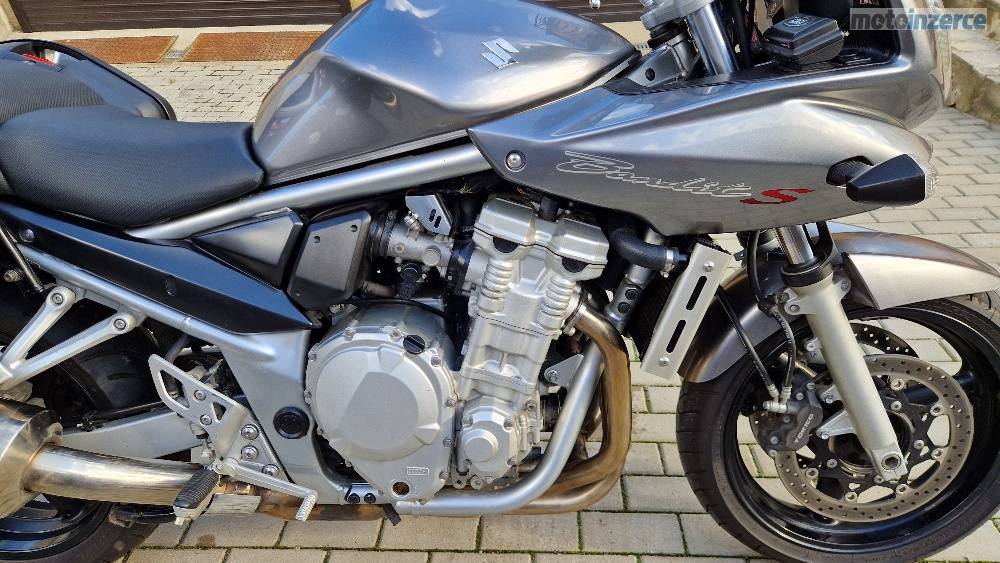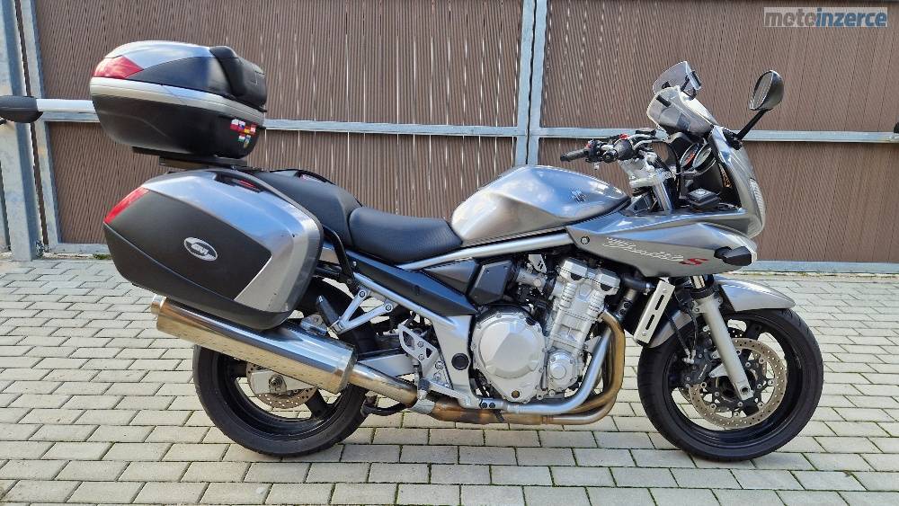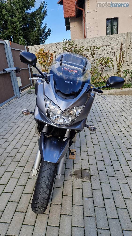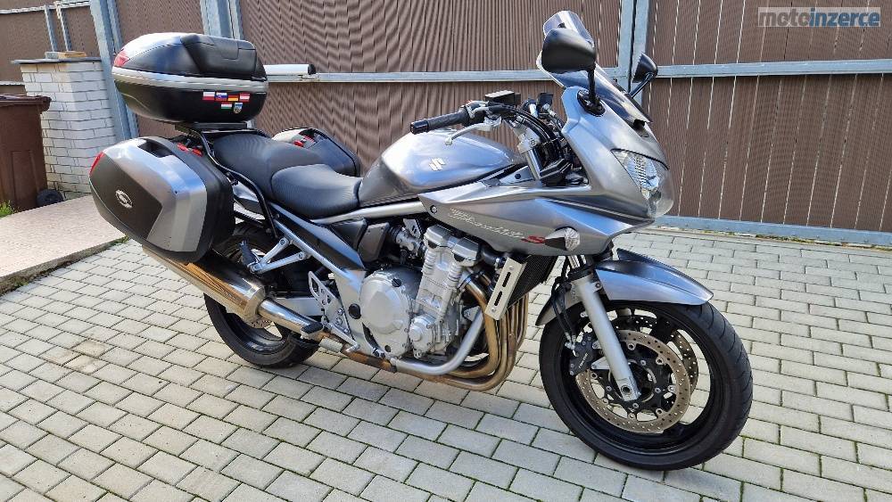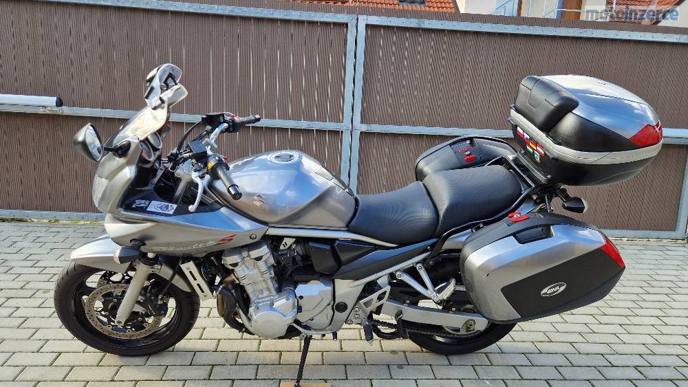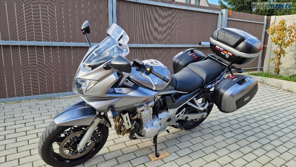 Prodám velice spolehlivý, nehavarovaný vybavený cestovní motocykl Suzuki GSF 650 S Bandit Travel, r.v. 2008, 62,5 kW, 2. majitel, pravidelný servis, kompletní kufry GIVI, zásuvka 12V, polohovatelný štít, ukazatel rychlostí, v L. kapotáži přihrádka pro plachtu, hlavní stojan. Najeto 56.511 km., neobyčejná SPZ (1968), nová baterie. Cena 68.000 Kč.