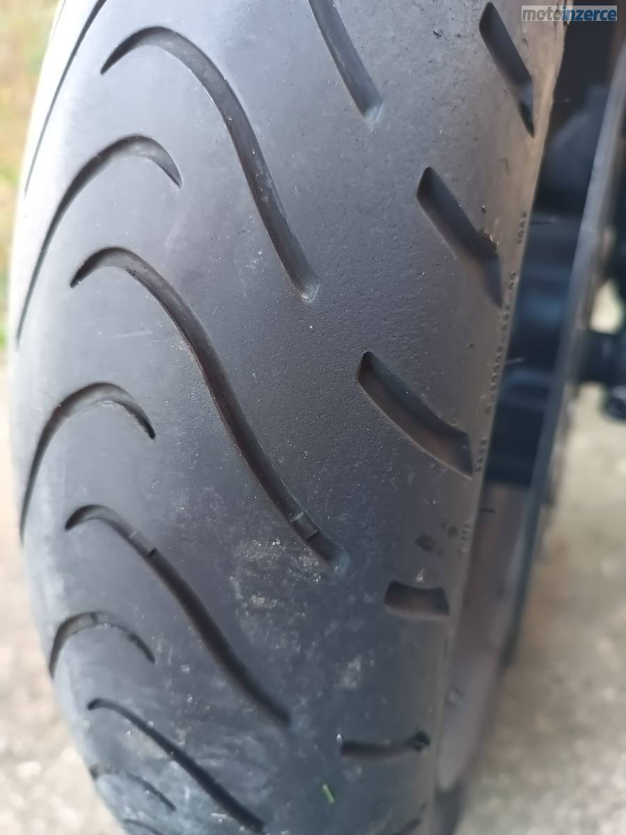 Stav: Pneu a řetězová sada v dobrém stavu, bez investic – připraveno na sezonu.