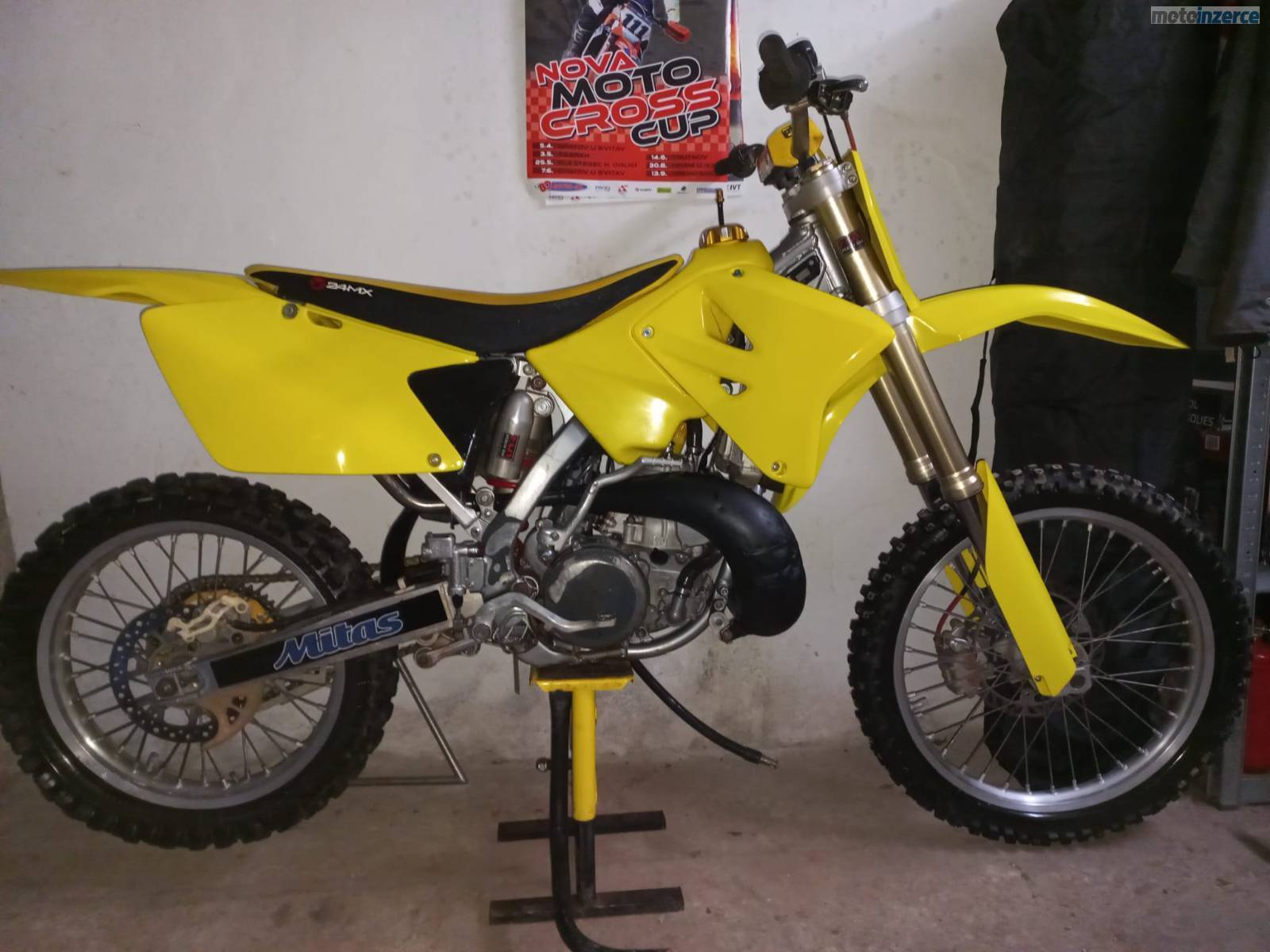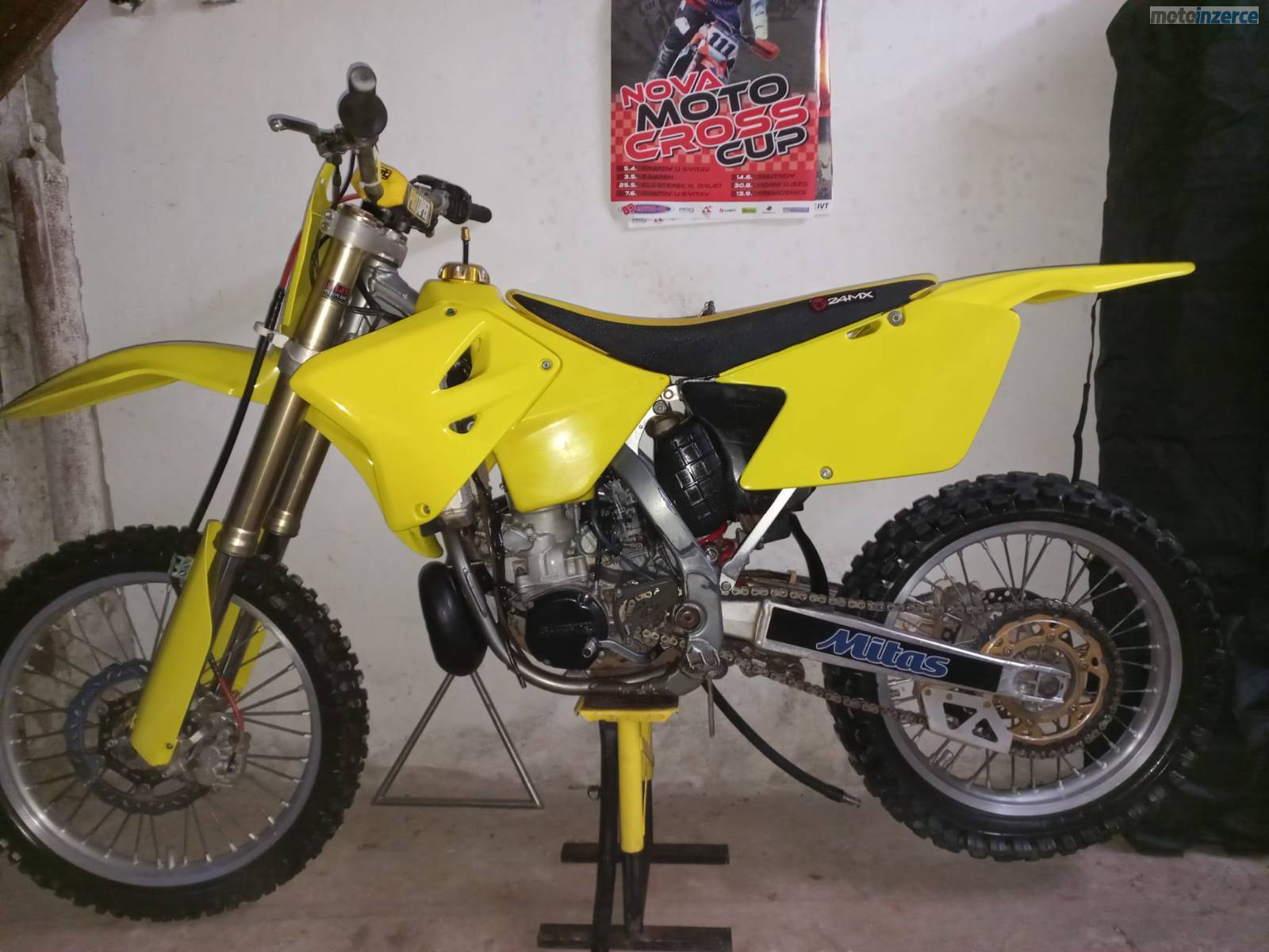 Prodám Suzuki RM 250 z roku 2007. Před 35 hodinami kompletní GO motoru u Moto Suchý (klikovka, ojnice, píst, ložiska, gufera), výměna ložisek a gufer v předním a zadním kole, nastříkaný rám. Před 24 hodinami nová řetězová sada, dekarbonizace výfuku, nové pneu. Před 9 hodinami nová pístní sada, honování válce, vyčištění přívěr, kontrola spojky, celková repase karburátoru, předního a zadního pérování u Fajn Pérování. Olej v převodovce měněn cca po 6 8 hodinách a vzduchový filtr po každém tréninku nebo závodě. Aktuálně je v převodovce nový olej, v chladiči nová nemrznoucí směs a plná nádrž. K tomu přidám 3 sady náhradních plastů, 3 litry oleje Q8 do benzínu, adetivum do benzínu, nové spojkové a plynové lanko, sadu trysek do karburátoru, nová ložiska do řízení a přepákování, nová těsnění do karburátoru a motoru, řadičku, 3 náhradní vzduchové filtry. Motorka by snesla nové pneumatiky (neplatí pro pole-loukaře), jinak je bez dalších investic připravená na sezónu. Cena k jednání.