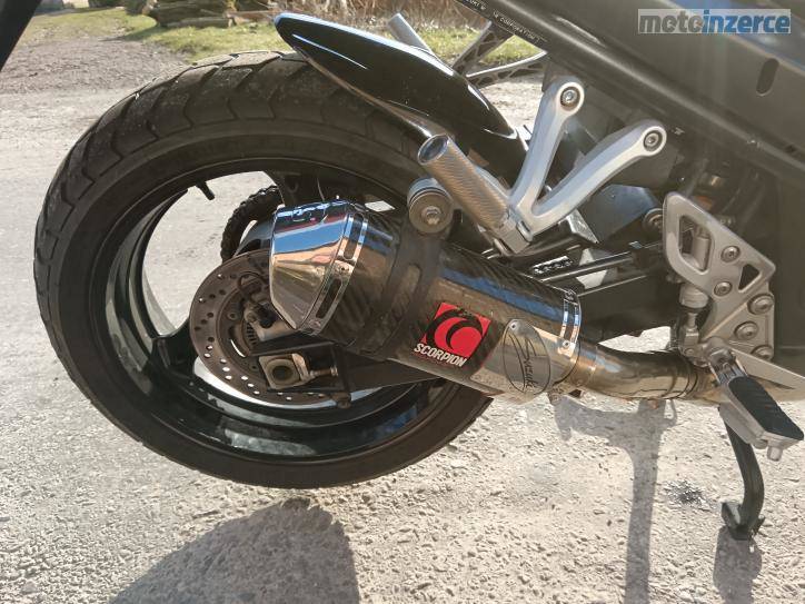 Motorka v dobrém stavu bez investic, pohledový tuning-lakování, polepy, laďák Scorpion, zadní blatníček, zásuvka 12V, sedlo. Původní silníční pneu k motorce přidám.