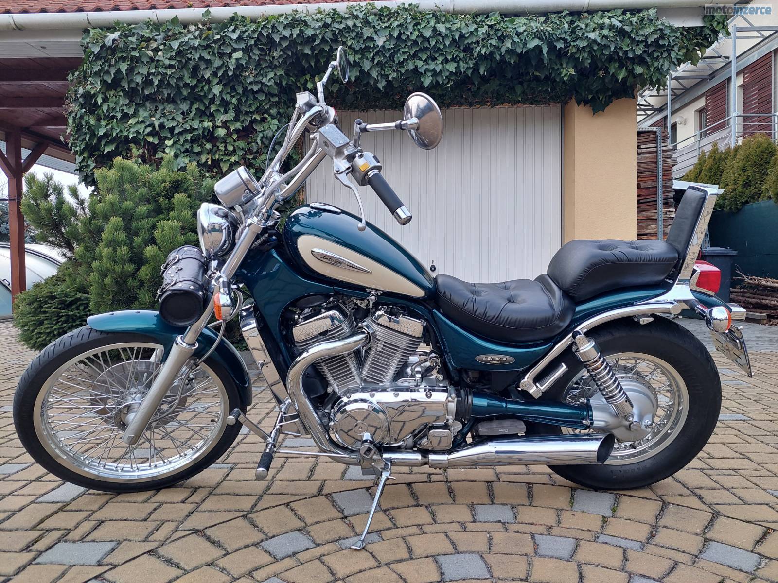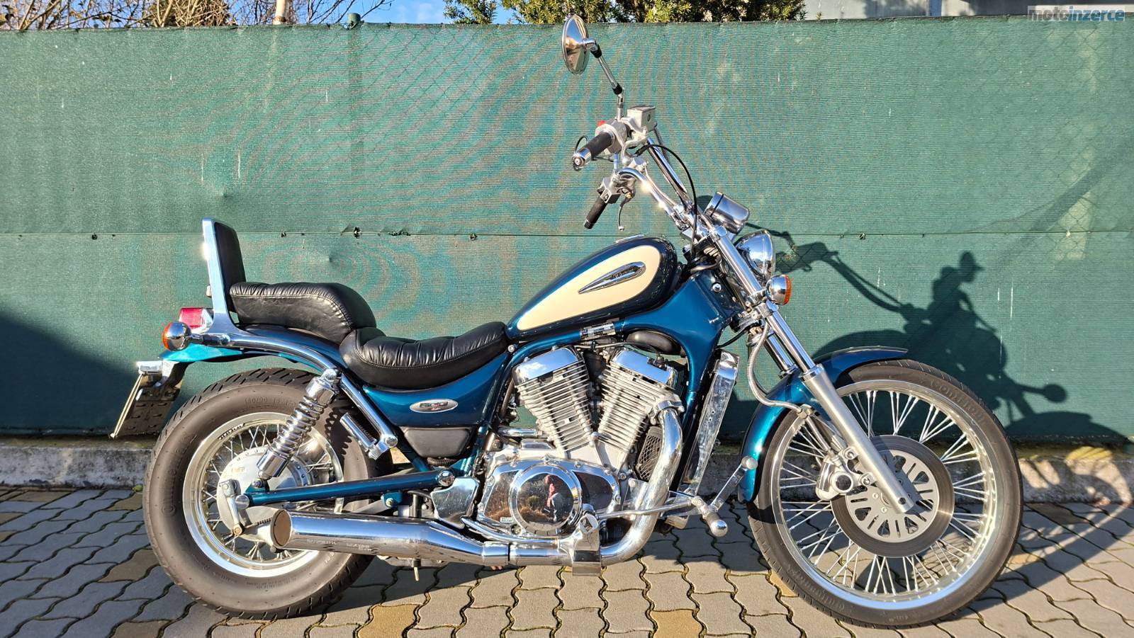 Prodám krásnou Suzuki VS 800 Intruder v originálním stavu s výjimečnou barvou r.v. 1998, dovezená ze Švédska v roce 2021, najeto pouze 23800 km, TK do 7/2029, 2x klíč, přepákování, vyšší řídítka, před rokem velký servis za 30 000 Kč – nové oleje, filtry, chl. kapalina, vzduchové filtry, vyčištění a seřízení karburátorů, svíčky, nová baterie, repase přední brzdy a pancéřové hadičky, nové pneu, repase spojky, CZ manuál.