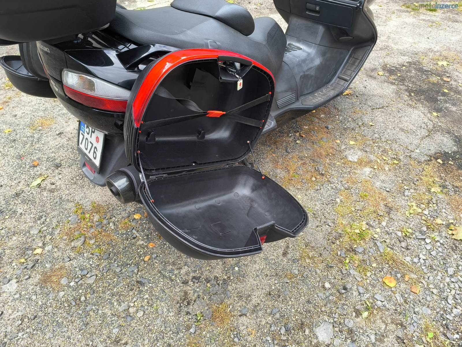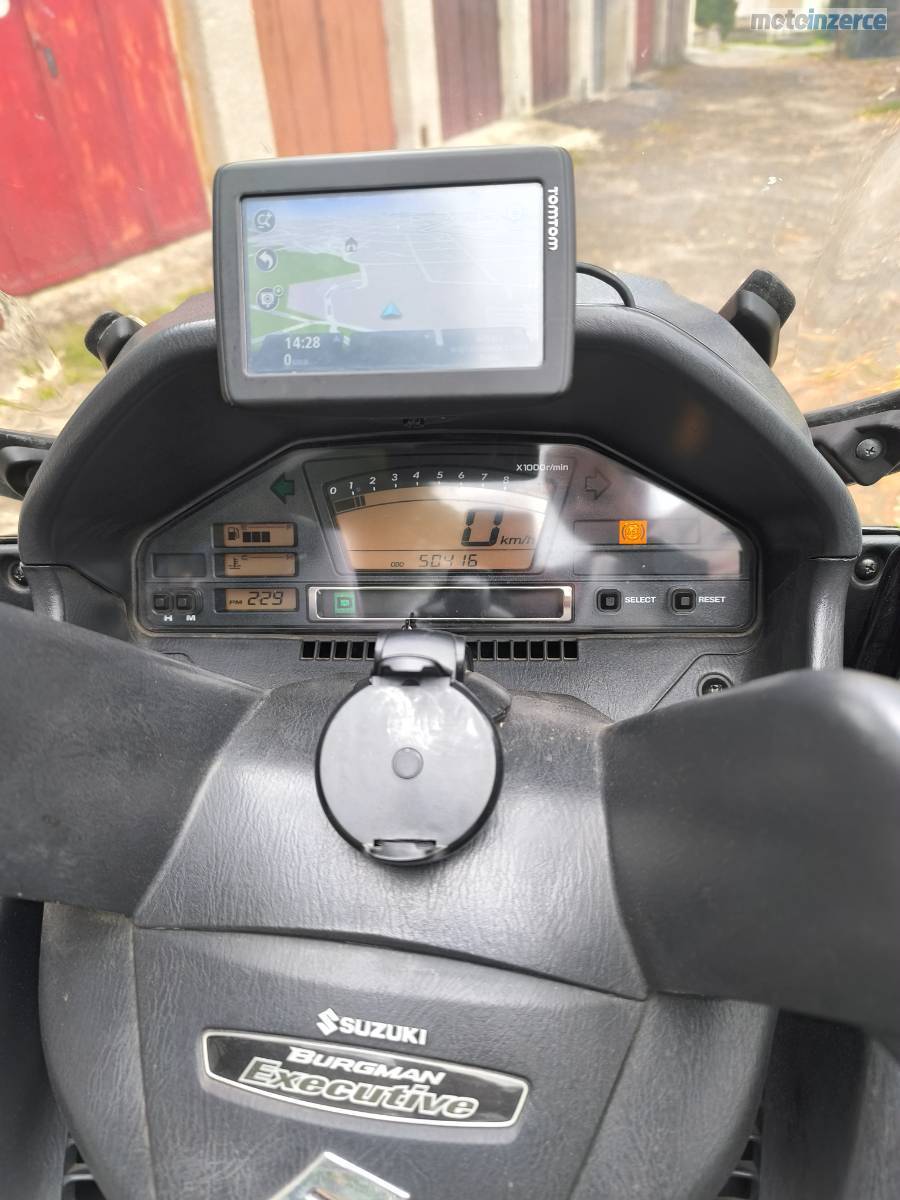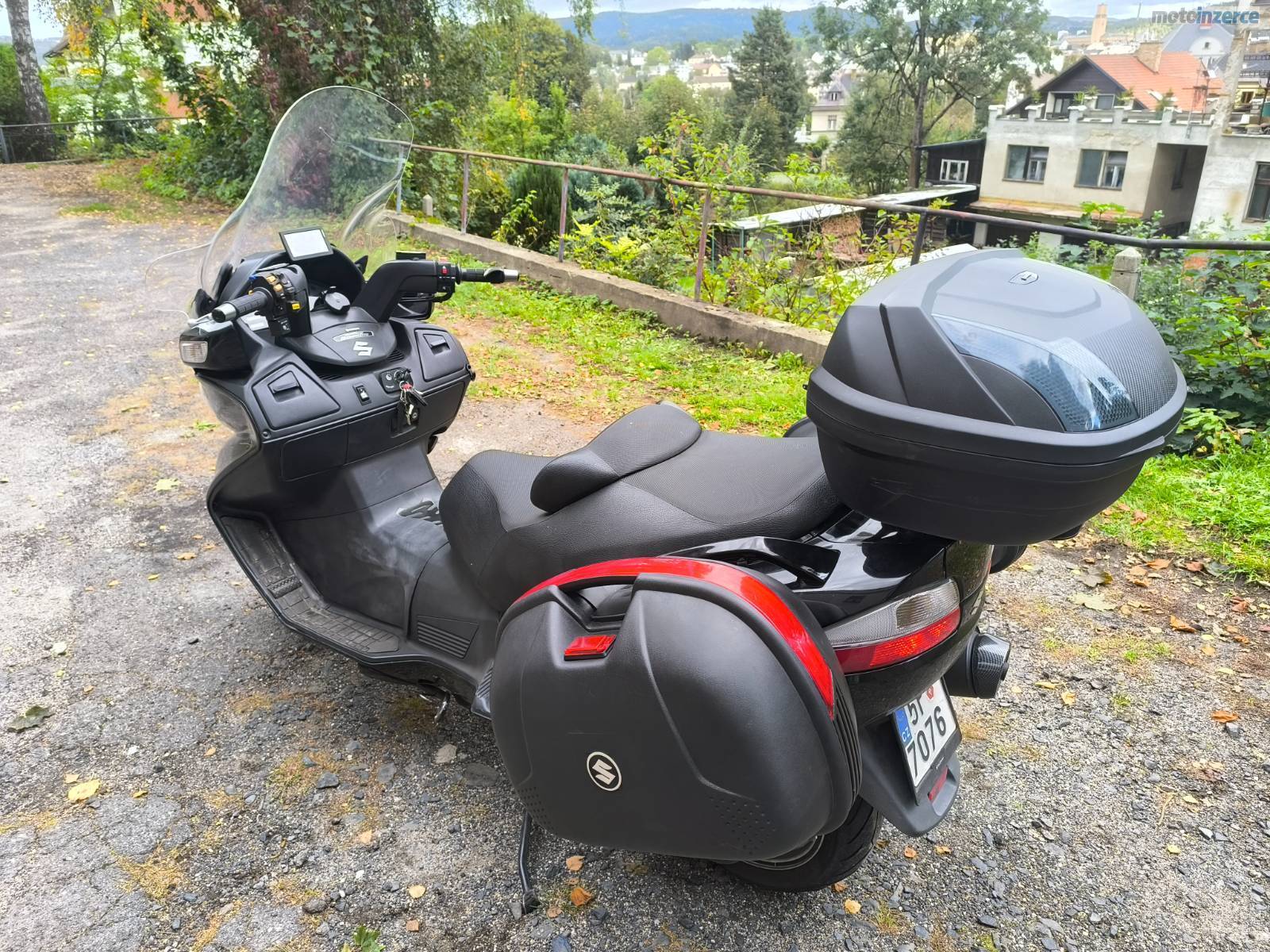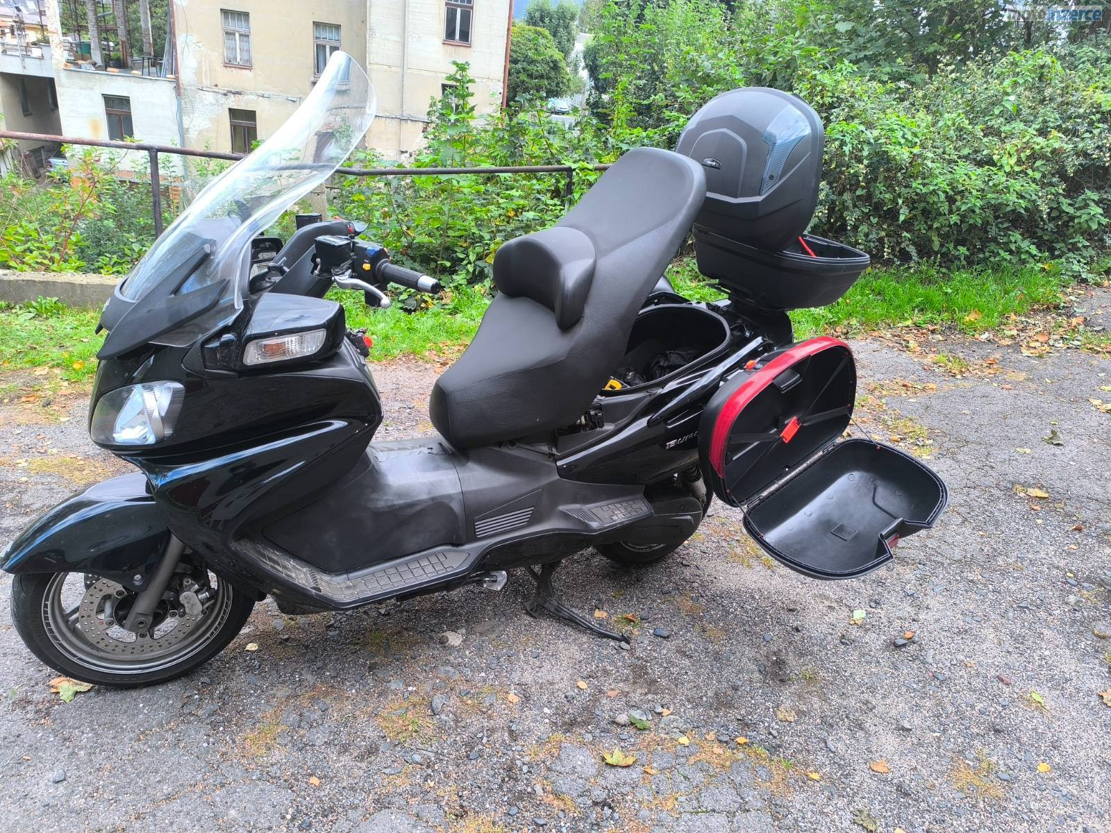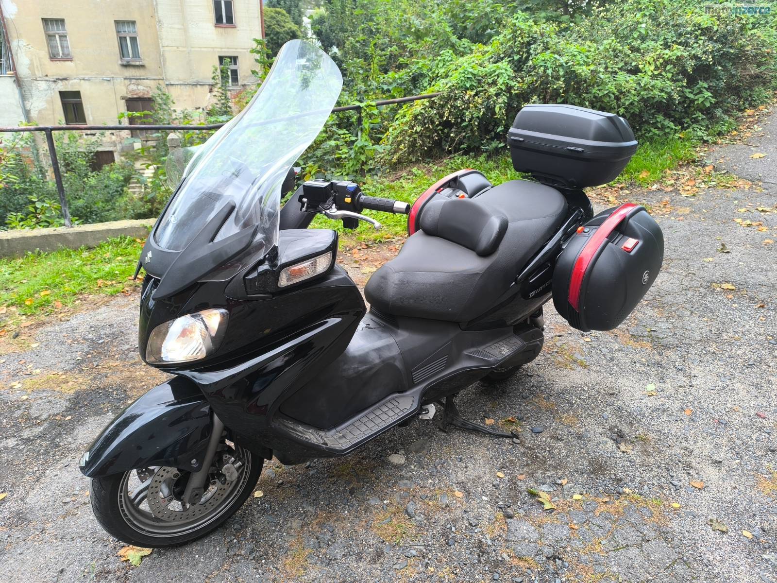 Prodám krasný velký cestovní skutr značky Suzuki Burgman Executive 650, r.v. 2011 najeto okolo 53000 km, nove pneu přední i zadní, oleje filtry, velka kontrola. Není to pro žádného začátečníka, jede 180km/h, černá perleť. V ceně zadní kufr 48l, boční kufry+ držáky. Navigace Tom Tom, držák na telefon atd. Mnoho doplňků. Vyhřívané sedadlo řidiče i spolujezdce, vyhřívané gripy, elektricky nastavitelný štít, manuální řazení na řidítkách. Samozřejmě 2 klíče. Cena 72000kč, Vlastním 2 roky. Důvod prodeje přechod na enduro
