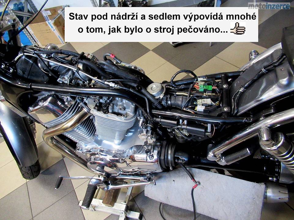 Nadstandardní výbava a úpravy byli dělány v DE. Intrudra zřejmě vlastnil milovník zbraní a leštěných věcí. Doplňky jsou tedy v tomto duchu (rukojeti řidítek, risrsety řidítek, kryt zapalovací skříňky, koncovky výfuků atd….) vše viz fota. Jsou zde rovněž velice citlivě sladěny chromované věci s černou barvou. Osazené laděné koncovky výfuky mají velice kultivovaným hluboký zvuk a není potřeba se obávat STK protože homologace výfuků je na STK požadována u motocyklů vyrobených po datu 06/2021. Podsedadlové kryty jsou chromované (originální jsou lakované), flašky (spodní část) předních tlumičů jsou zrcadlově vyleštěné. Rovněž tak jsou vyleštěné obě pumpy na řidítkách (přední brzda a spojka atd…..). Na zakázku vyrobené vyšší risrsety. Je vyleštěn přední brzdový třmen. Pancéřové hadice pro přední brzdu a spojku (mají homologaci). Na bocích kastlíku AKU jsou osazeny antikorové, leštěné kryty. Místo měrky oleje je umístěn teploměr oleje jehož součástí je rovněž měrka oleje atd….