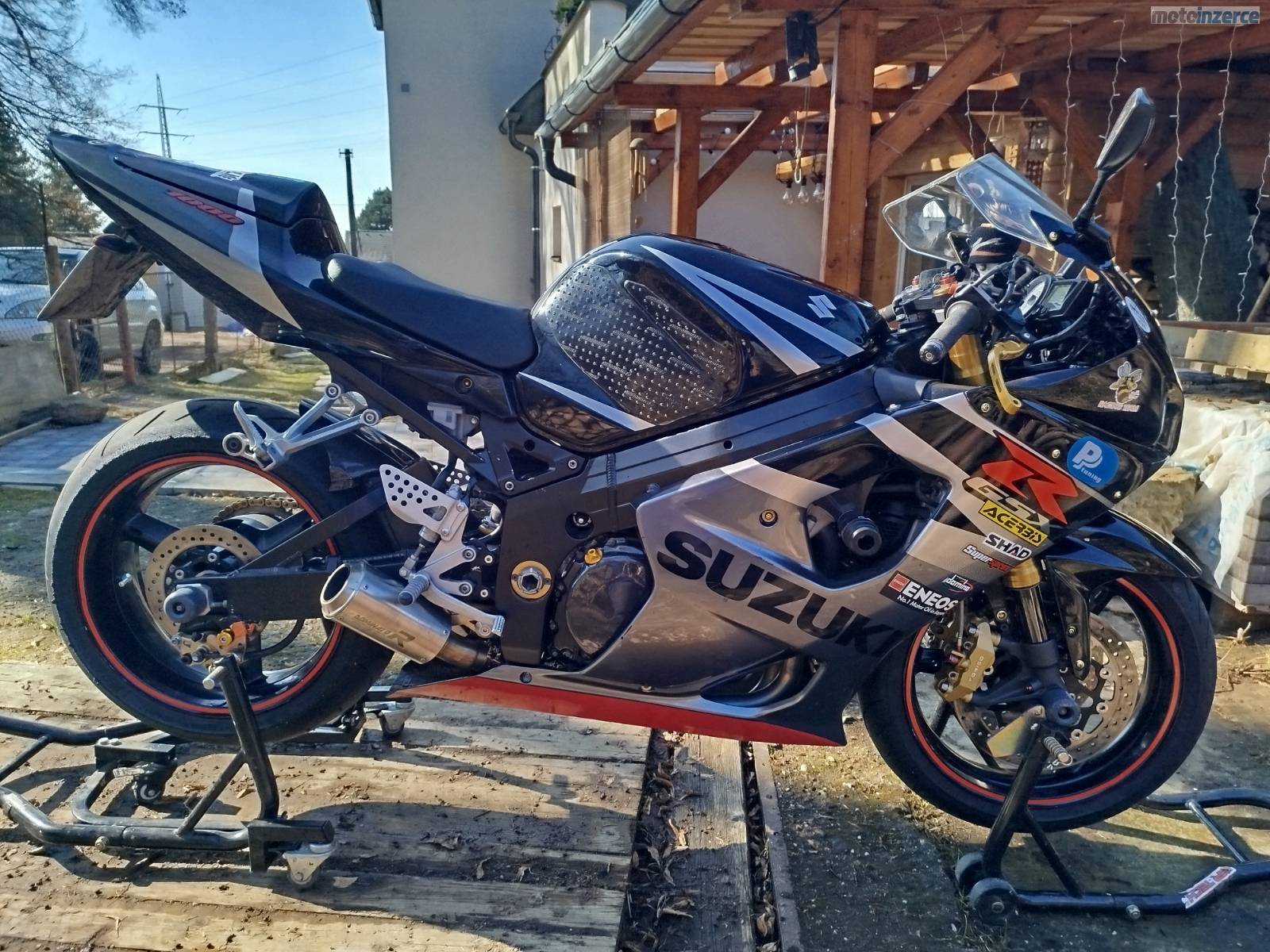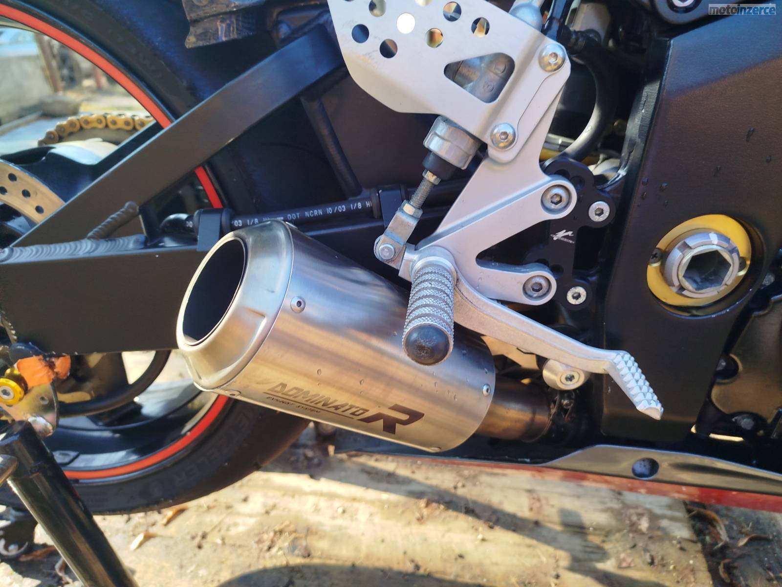 Páčky PP Tuning, pancéřové hadice, karbonové kryty motoru, ukazatel zařazené rychlosti, koncovka Dominátor, Domino plyn, K&N vzduchový filtr, minulý rok servis: repase vidlice, všechny náplně, svíčky, kotouče Brembo Oro, pneu Meltzeler sportec M9 rr,
