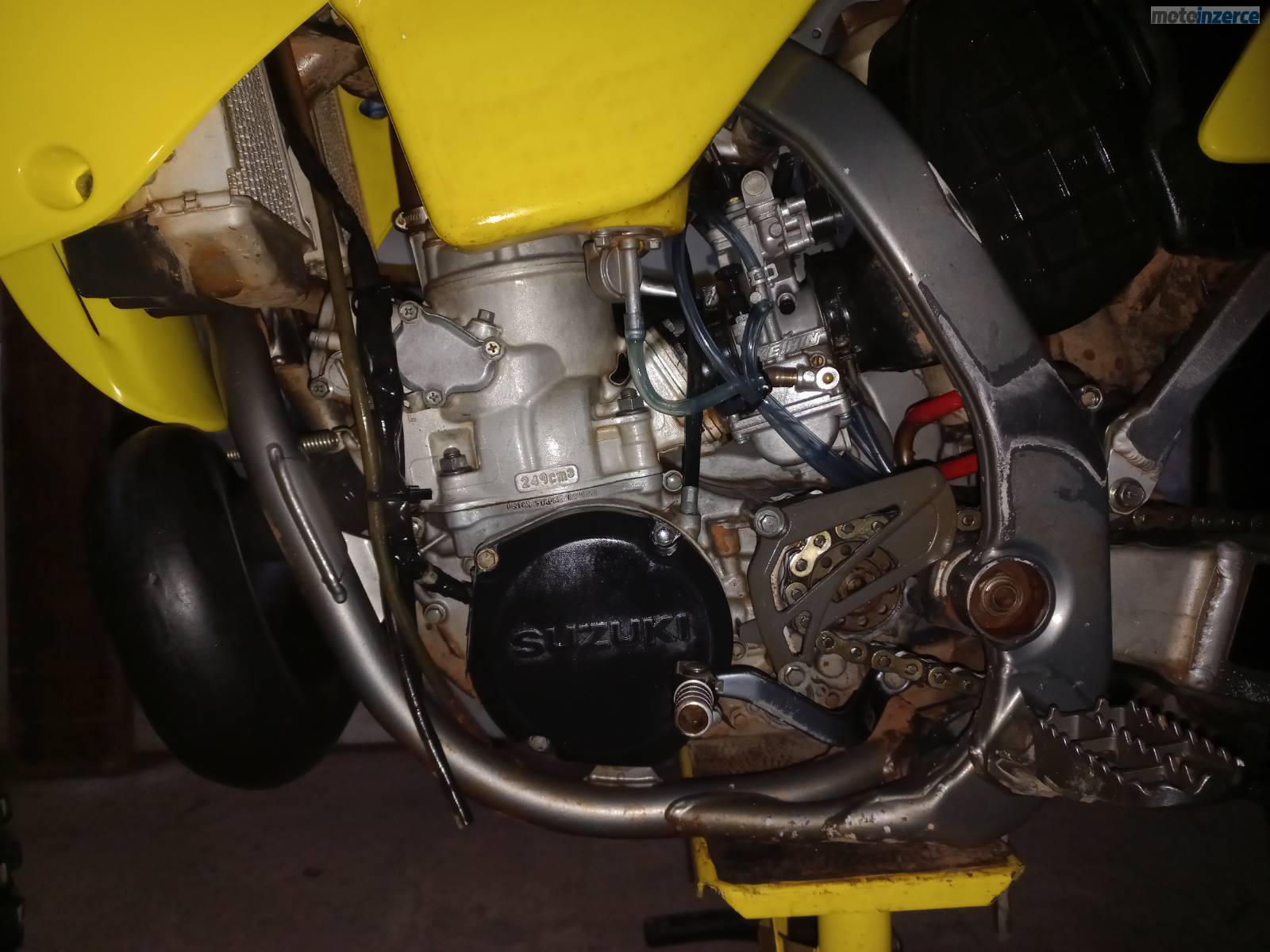 Prodám Suzuki RM 250 z roku 2007. Před 35 hodinami kompletní GO motoru u Moto Suchý (klikovka, ojnice, píst, ložiska, gufera), výměna ložisek a gufer v předním a zadním kole, nastříkaný rám. Před 24 hodinami nová řetězová sada, dekarbonizace výfuku, nové pneu. Před 9 hodinami nová pístní sada, honování válce, vyčištění přívěr, kontrola spojky, celková repase karburátoru, předního a zadního pérování u Fajn Pérování.