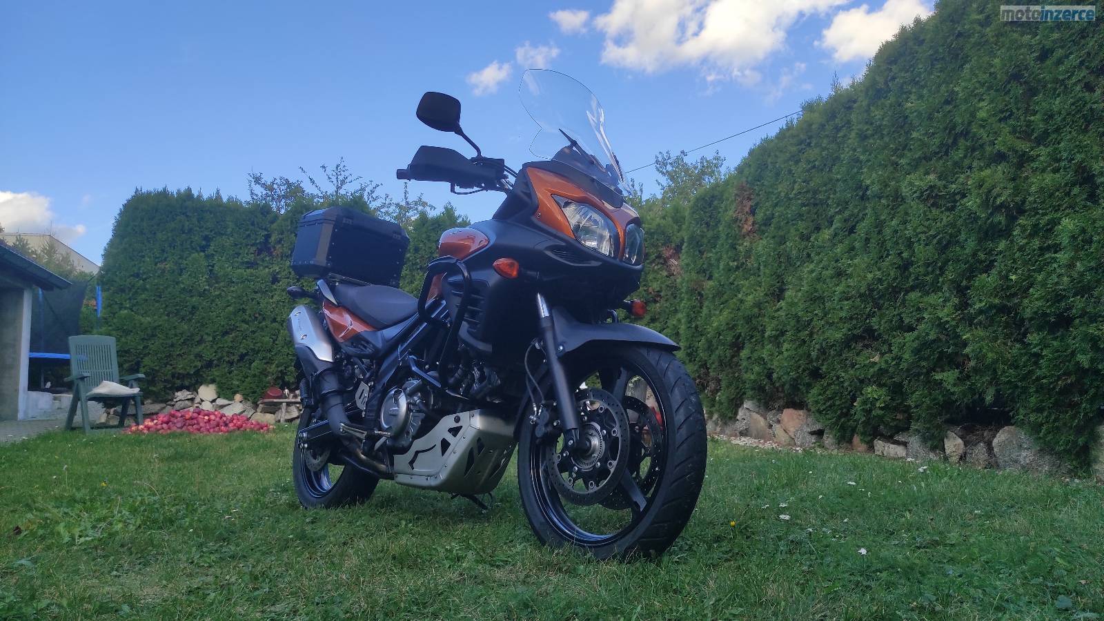 Motor i řazení jde naprosto hladce. Komfortní jízda, ideální na delší cesty, nízká spotřeba. Pro ty, kdo hledají spolehlivou motorku na cestování. Spousta doplňků hliníkový kryt motoru, kryt chladiče, blatník zadního kola, vyšší turistické plexi Puig, vyhřívané hefty Oxford, chrániče rukou, originál topcase Suzuki