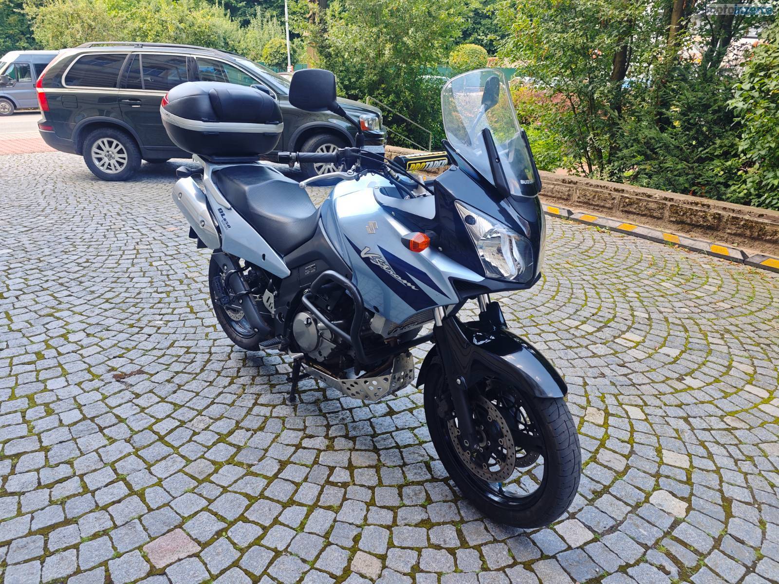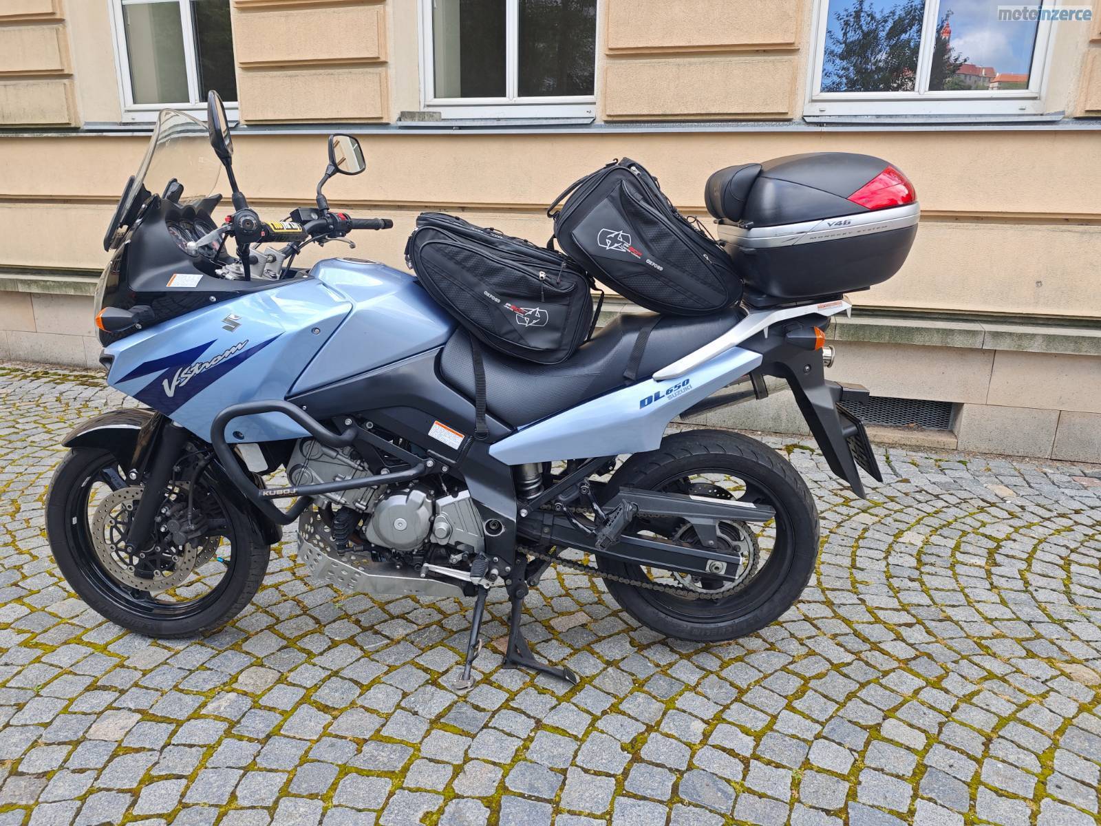 Prodám Suzuki V-strom 650 r.v. 2006, najeto 53150 km, 49 kW-možno řízení A2 25 kW v TP, nová TK, moto v dobrém technickém stavu, připravena na sezonu. Drobné kosmetické vady úměrné stáří. Pneu již horší. Výbava dle foto: padací rám Kuboj, spodní kryt motoru, zadní kufr na 2 helmy, nové text. brašny, centrální stojan atd…..