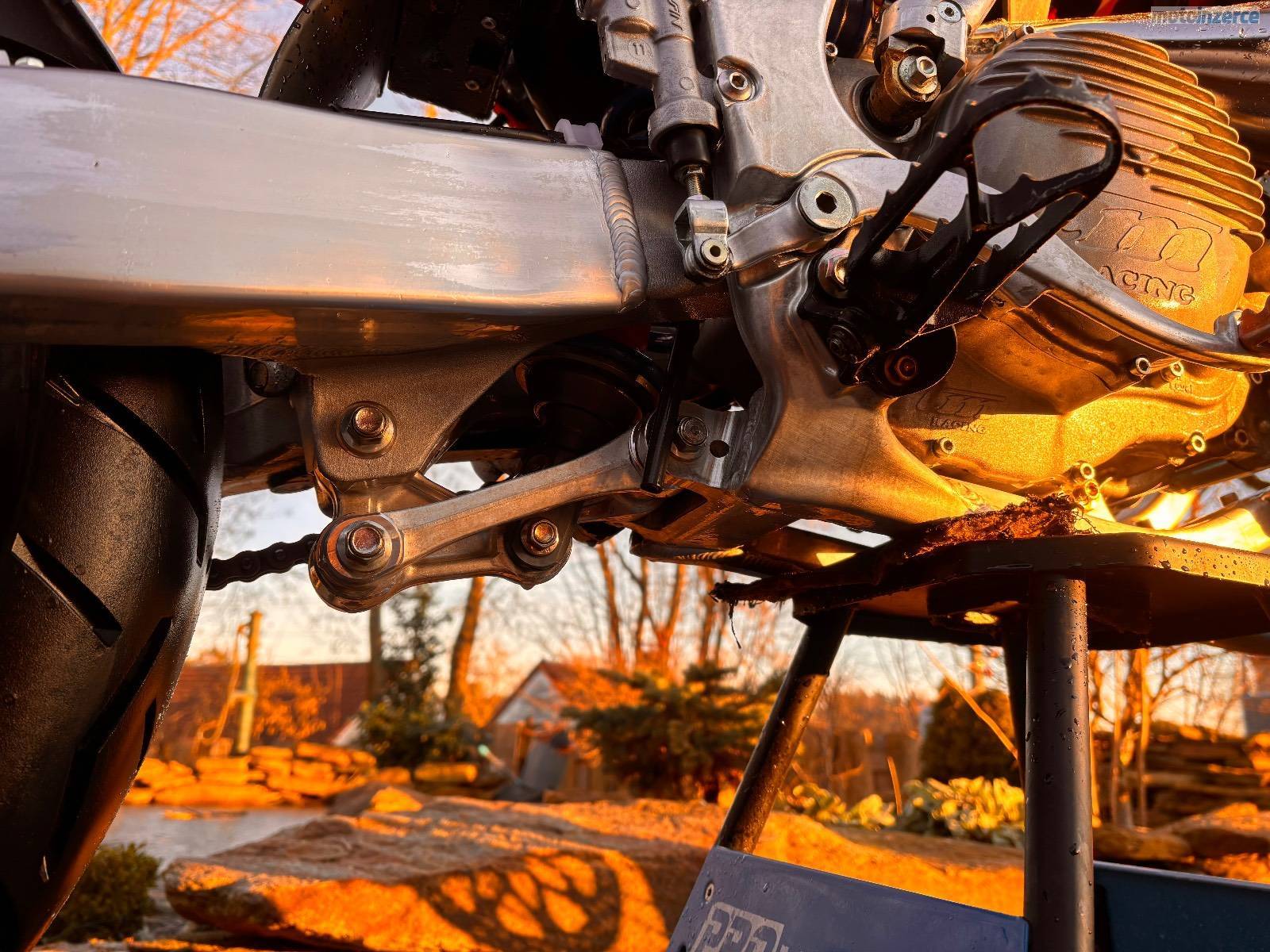Olej v převodovce měněn každých max 8 mth Motul 300V. Do benzínu Motorex crosspower 2T.