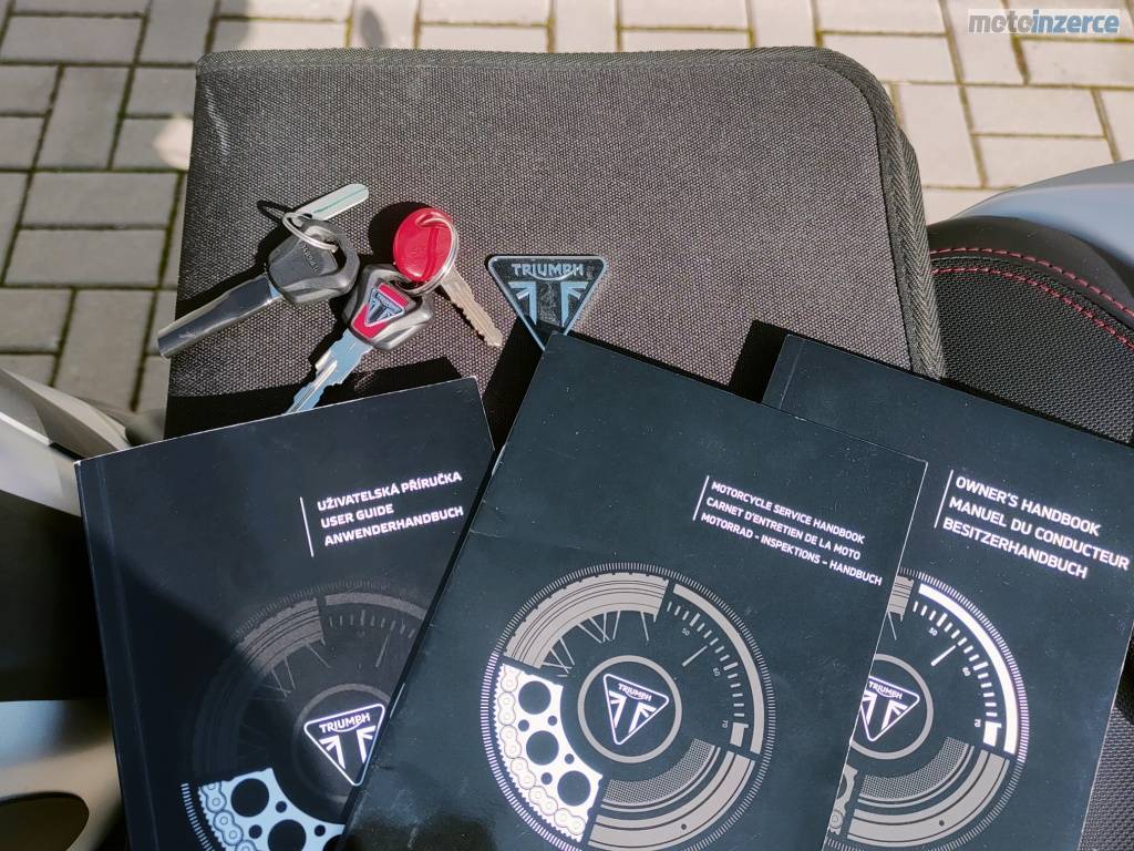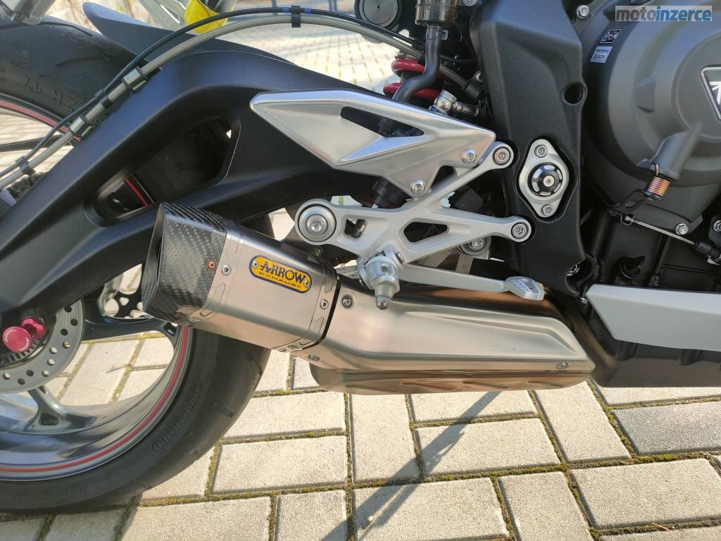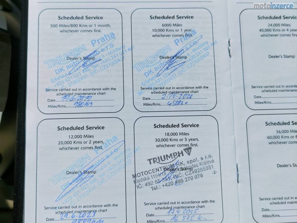 Motorka koupena v ČR, super stav, bez nehody, výfuk Arrow (+ originál), zrcátka do konců řidítek (+ originál), klín pod motor, padací protektory Triumph, zatmavený plexi štítek, TMPS ventilky, madla spolujezdce, ochrana nádrže (Tankpad Triumph + boky EAZIgrip), ochranný kryt chladiče, USB zásuvka na řídítka Daytona.