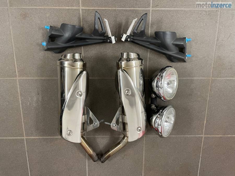 Na moto nové: celolak, zpětná zrcátka, zalamovací páčky, přední světlo z novějšího modelu, výfuky, baterie. Pneumatiky 80%. Před každou sezonou výměna všech náplni a svíček.