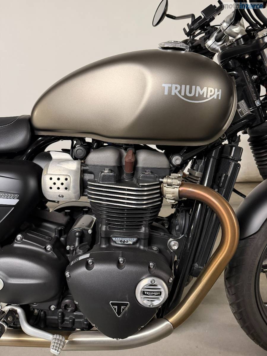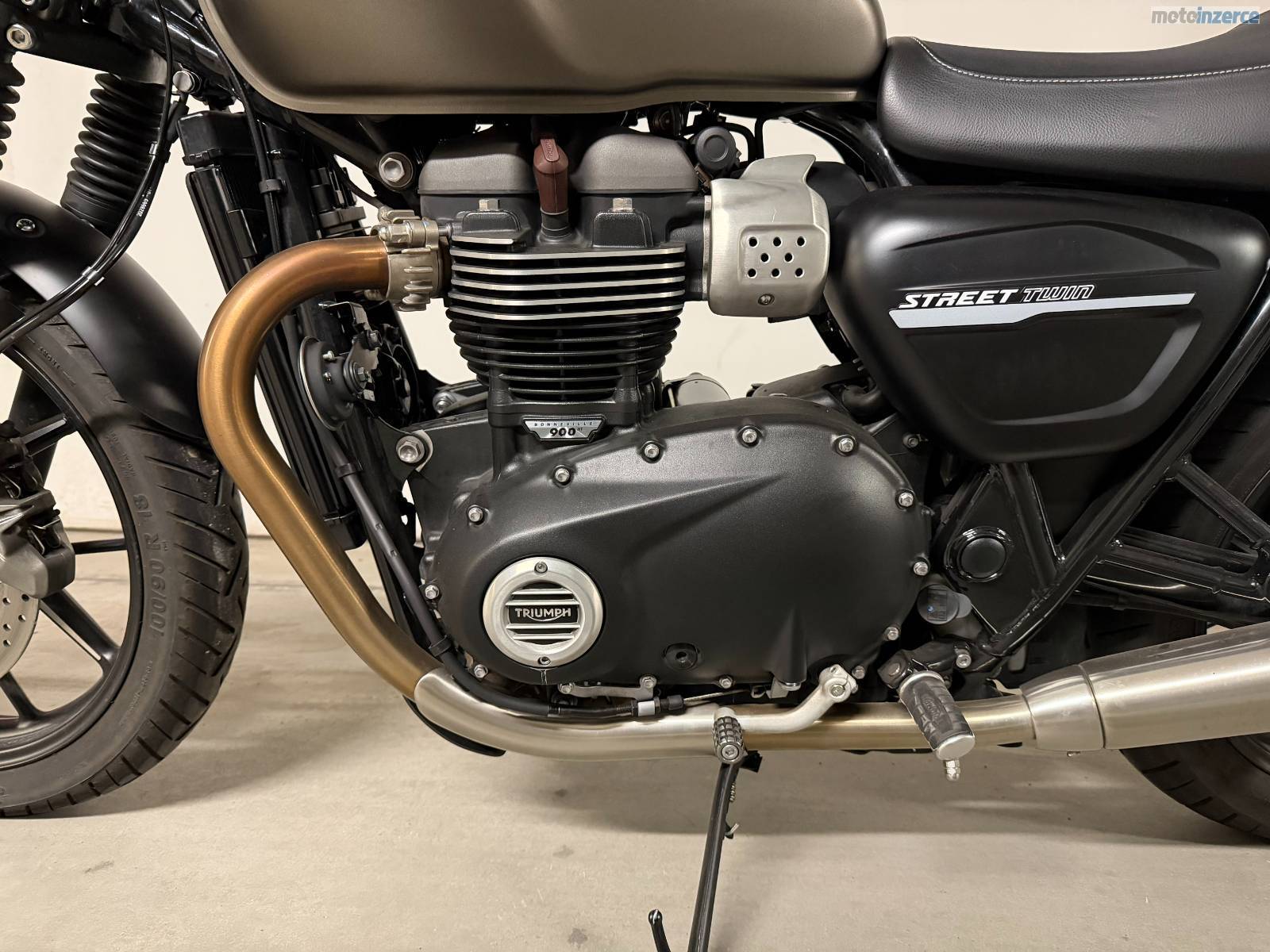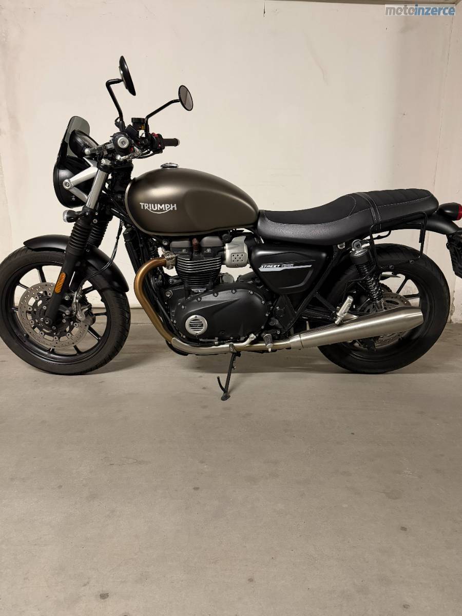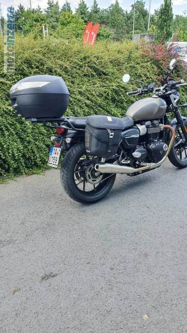 Krásný Street twin 900 s vyhřívanými gripy, krytem pod motor, větrný štítek a pár estetických doplňků. Navíc topcase a boční kurfy Givi.