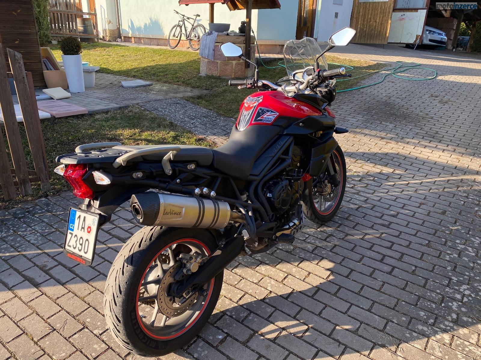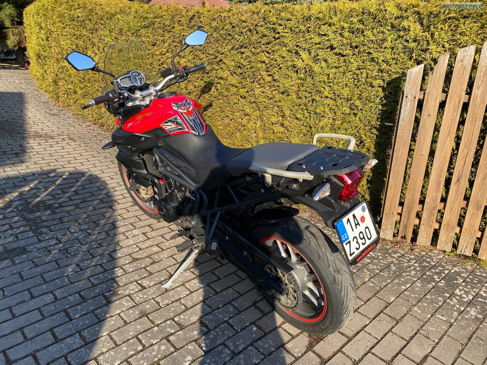 Prodám Triumph Tiger 800 XR, r.v. 2012, výkon 70 kW. Najeto 53xxxkm. Motorka je v moc pěkném stavu včetně doplňků v podobě předního vrchního blatníku, laděného výfuku Leo Vince (fakt parádní, plnotučný zvuk tříválce), vyhřívaných rukojetí. Dobře ovladatelná, pohodlná a velmi svižná motorka vhodná i na cestování, s rozumnou spotřebou kolem 5 6l/100 km. Více info na tel.