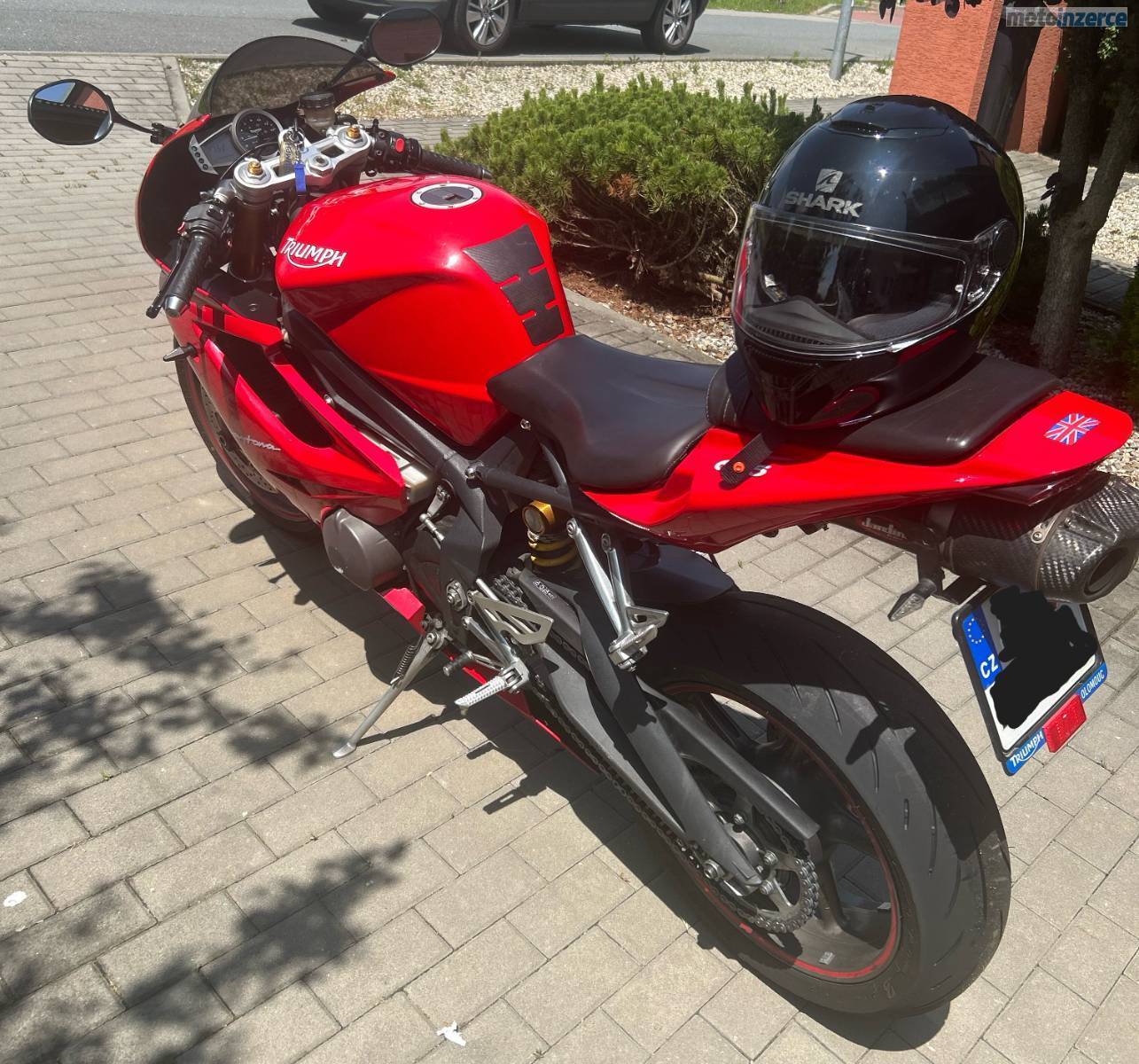 Prodám motocykl Triumph Daytona 675 barva červená, rok výroby 2007, vyrobeno ve Velké Británii, datum první registrace v ČR 2008, najeto 34 149 km, sportovní mapa motoru zvýšený výkon. Používaná pouze na vyjížďky k rekreačním účelům, nikoliv ke sportovním, kosmetické vady motocyklu. Servisní knížka, pravidelný servis, 2x klíče. Úpravy laděný výfuk Jardine, led blinkry, nová řetězová sada, nové pneumatiky.