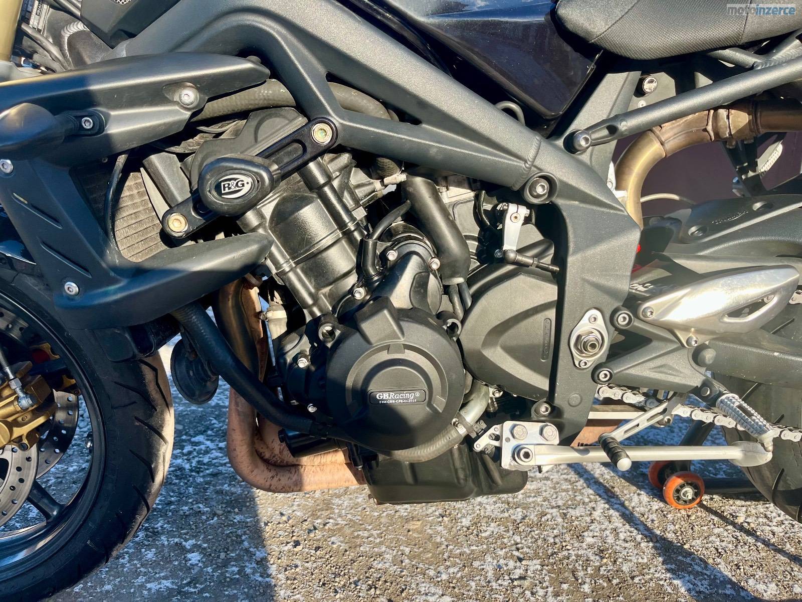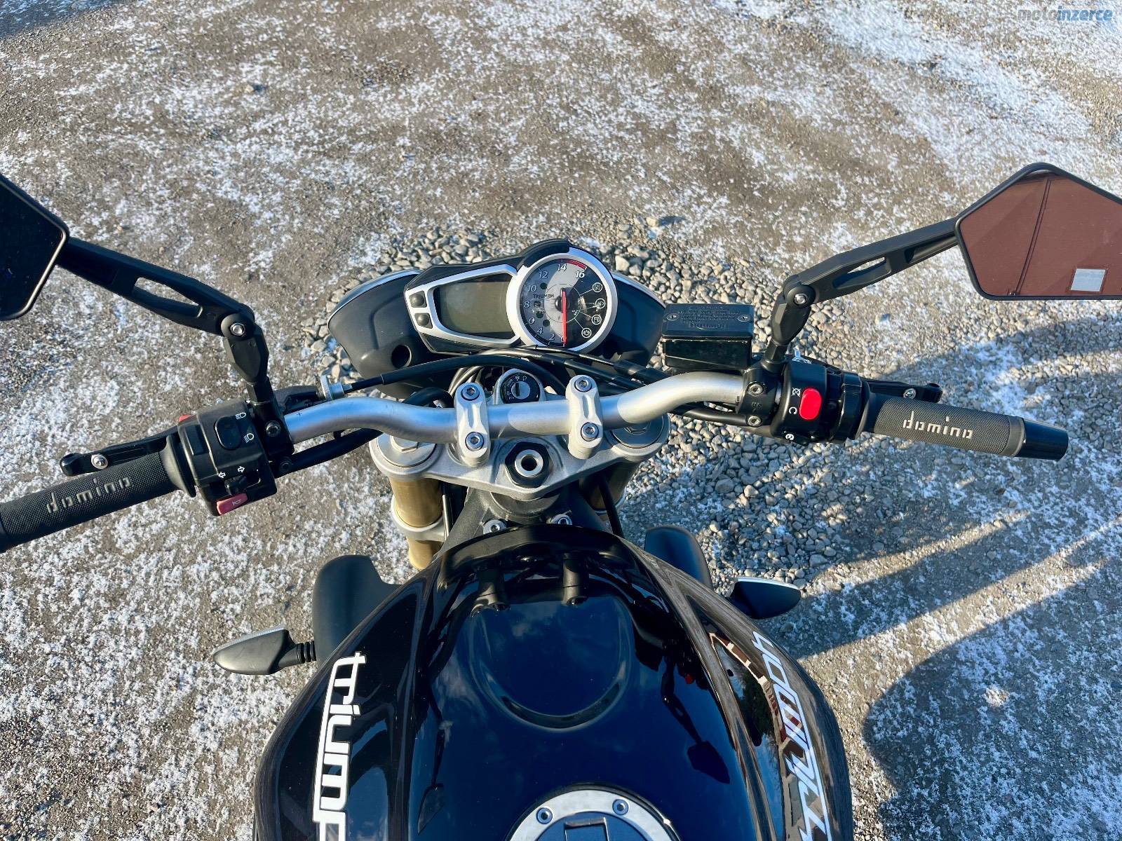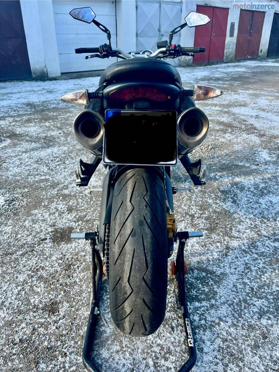 Doplňky: originál laděné výfuky od Triumphu Arrow s vyndavacím DB killerem a homologací, kryty motoru GB Racing, padáky motoru a krátký držák SPZ RaG racing + originál, stavitelné páčky Mstyle + originál, 2x zrcátka Mstyle (klasické na motorce + boční Caffé racer, Domino gripy, těžší závaží v řidítkách + originál, upravené sedlo