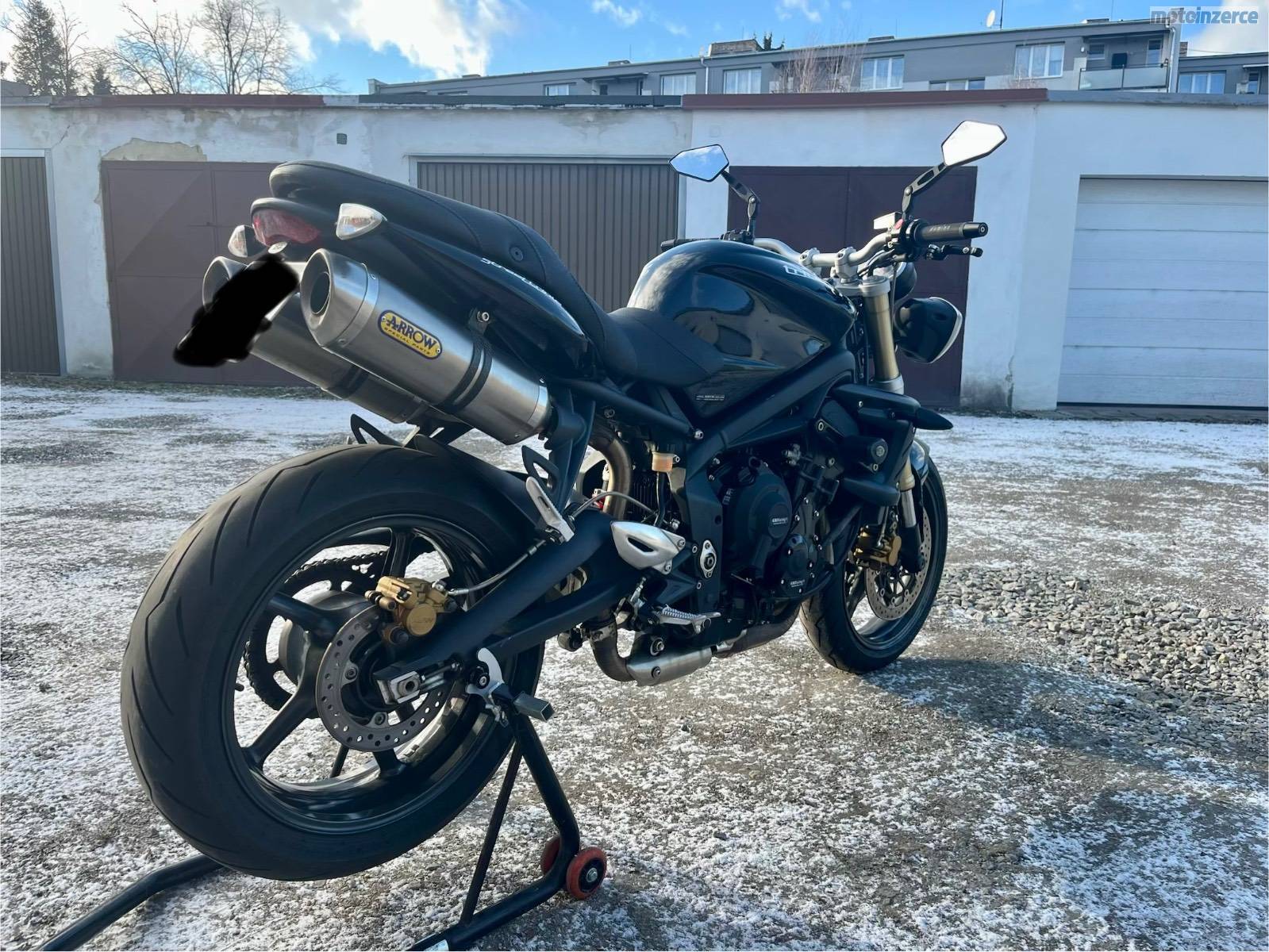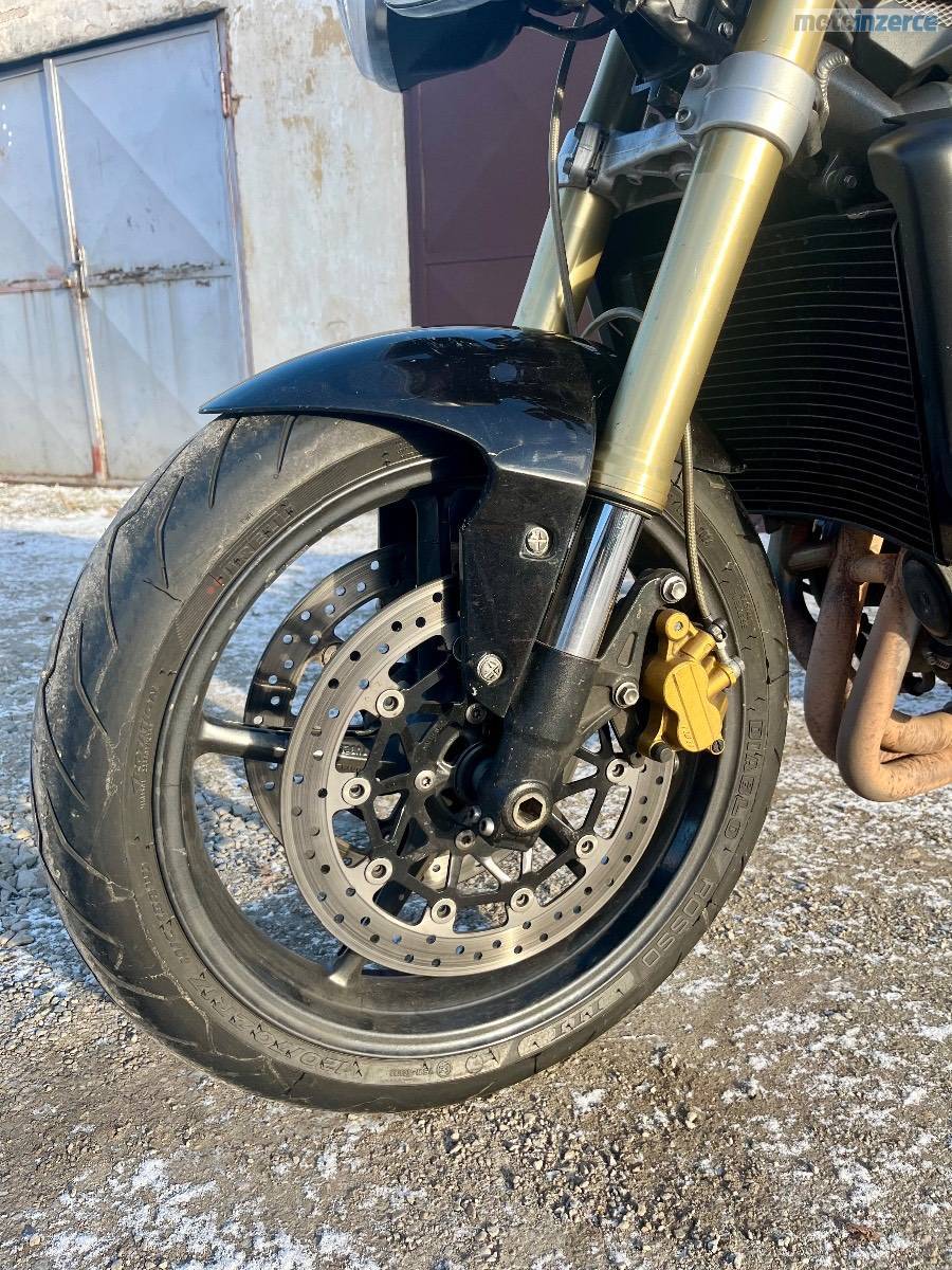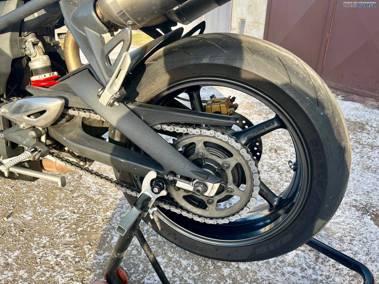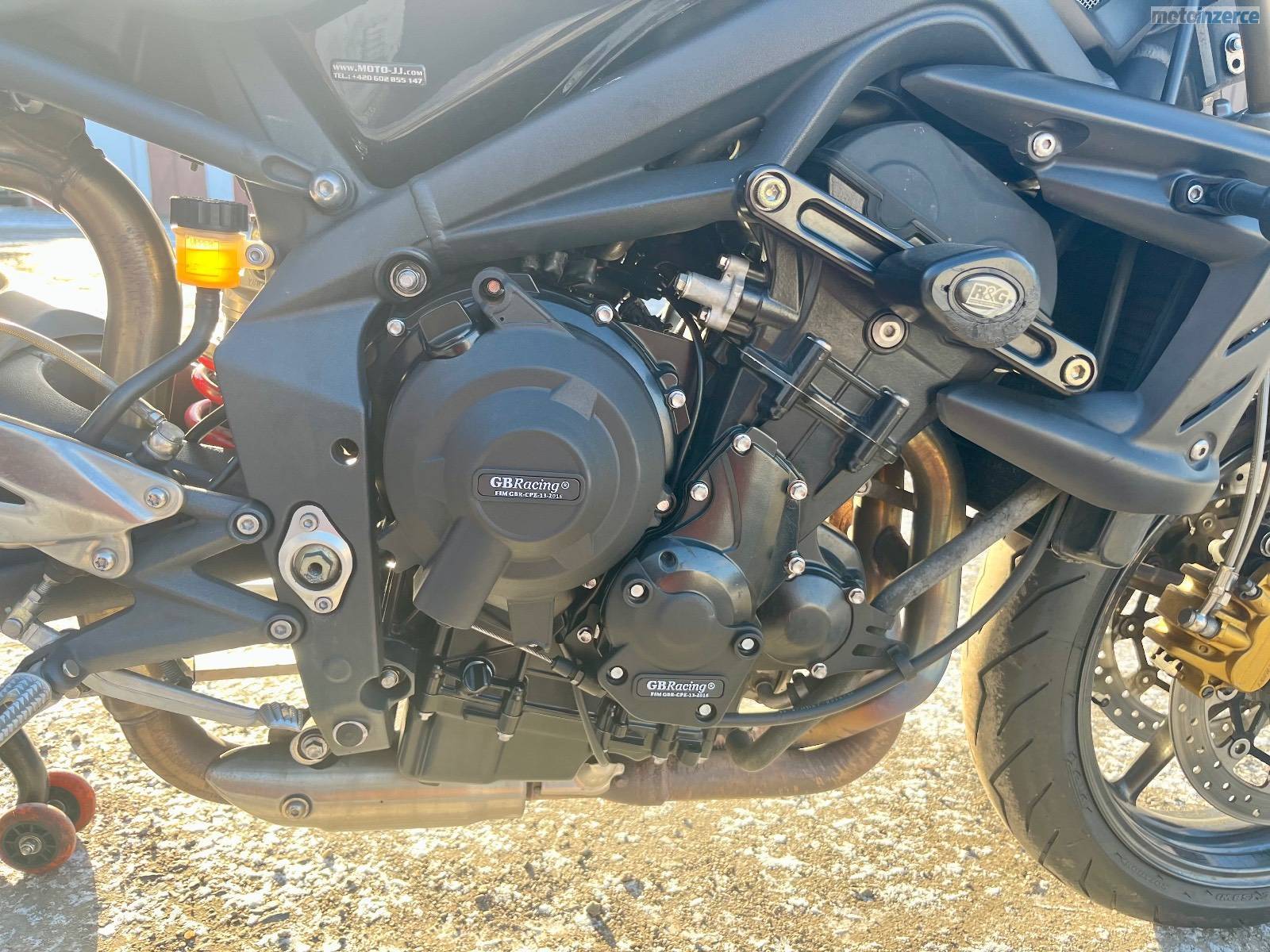 Doplňky: originál laděné výfuky od Triumphu Arrow s vyndavacím DB killerem a homologací, kryty motoru GB Racing, padáky motoru a krátký držák SPZ RaG racing + originál, stavitelné páčky Mstyle + originál, 2x zrcátka Mstyle (klasické na motorce + boční Caffé racer, Domino gripy, těžší závaží v řidítkách + originál, upravené sedlo