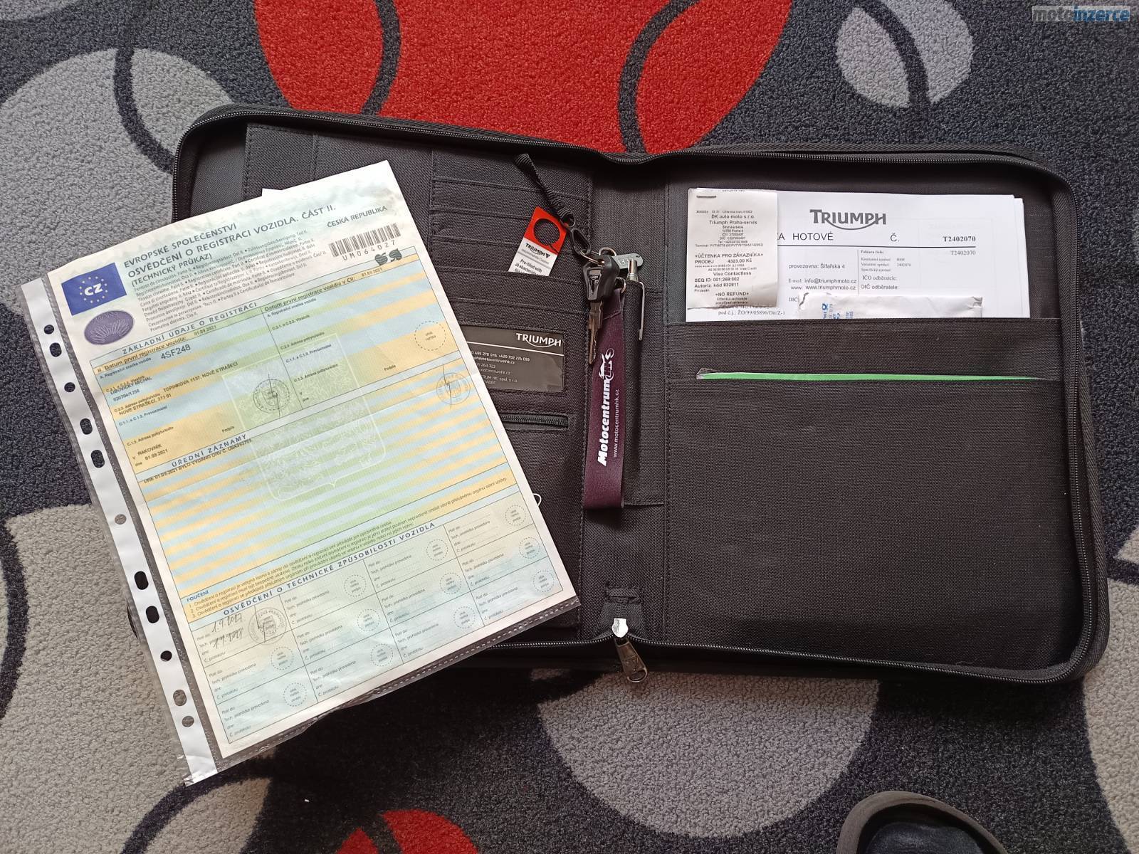 Jsem první majitel, bylo o ní pečlivě staráno. Servisováno v servisu Triumph. Vedeno v servisní knize. Loni proběhla první výměna oleje svépomocí. Motorka je připravena na sezónu. Koncem letošního roku, nebo začátkem příští sezóny bude třeba měnit brzdovou a chladící kapalinu.