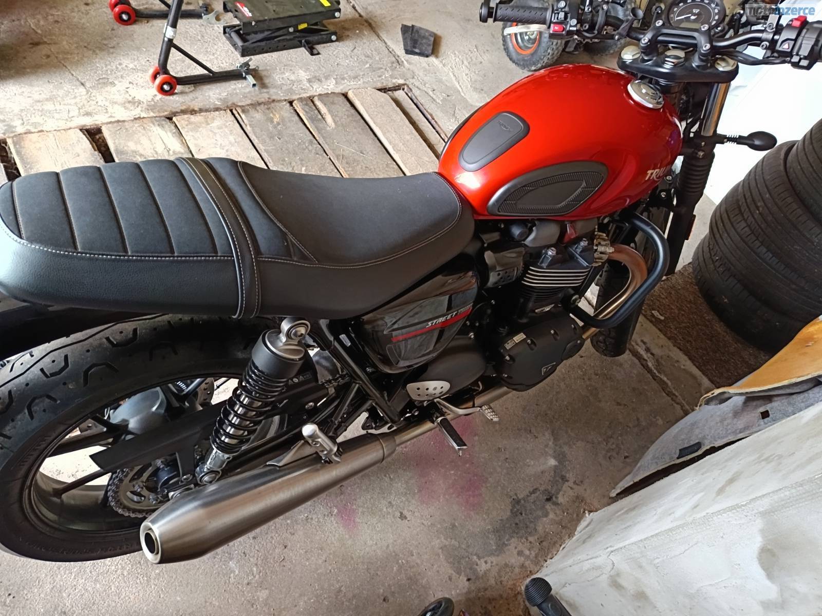 S motorkou jsem měl v roce 2022 nehodu. Veškeré díly byly nahrazeny novými. Oprava proběhla v autorizovaném servisu Triumph Praha. Stroj je v naprostém pořádku.
