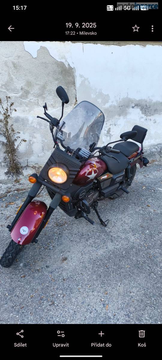 Kosmetické vady, 4takt, kapalinou chlazený 1válec, motorka je nevyužitá, nová baterie