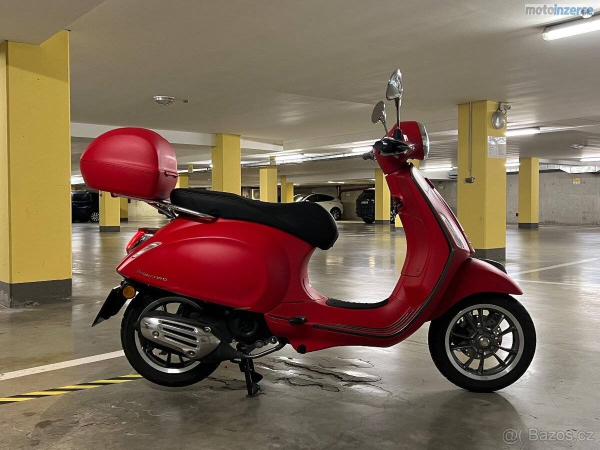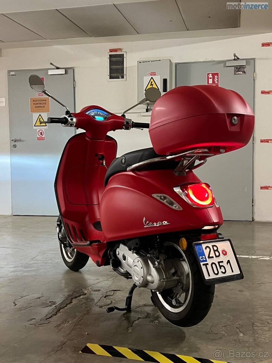 Nabízím k prodeji nádhernou Vespu Primavera v matně červené barvě Rosso Profondo.