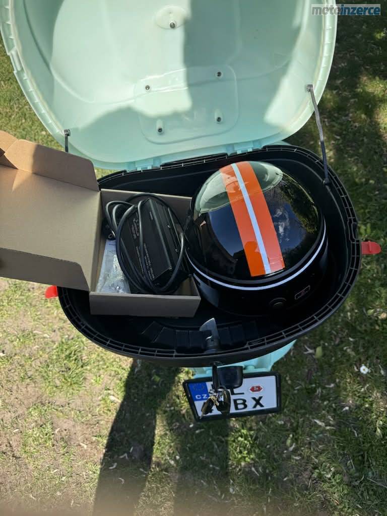 Rok výroby 2022, STK 07/2028 přidaný originál zadní nosič a kufr, kam se pohodlně vejde helma. Skútr je po přestěhování nevyužitý. Dohoda jistá.