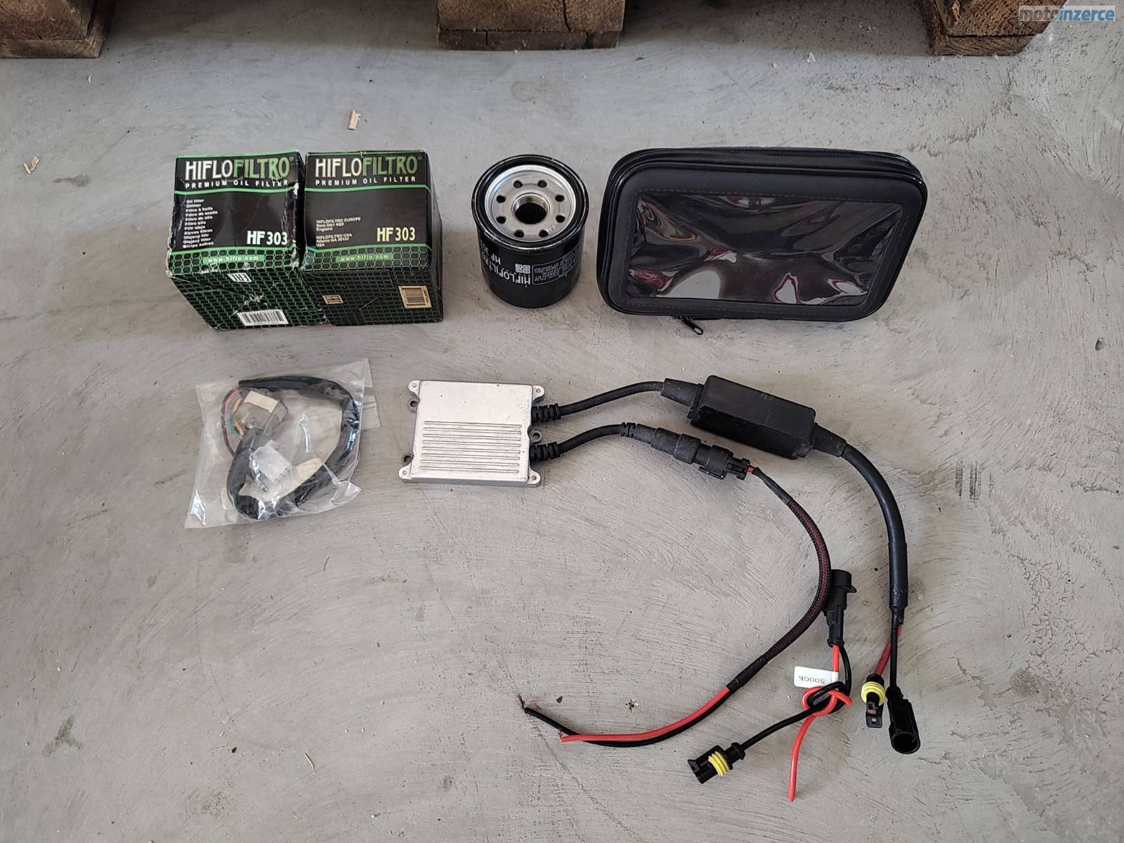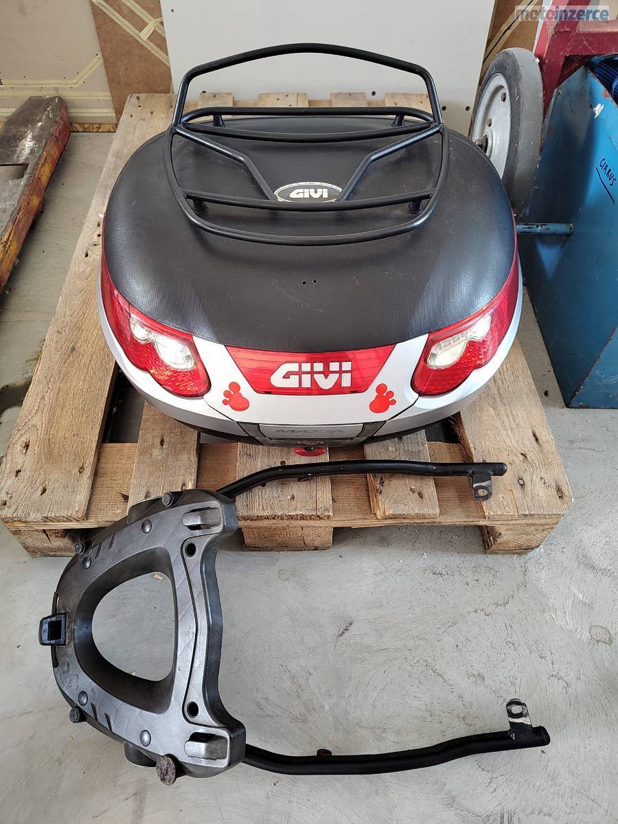 Motocykl má kromě standardní výbavy padáky, přidám nový indikátor zařazené rychlosti, velký uzamykatelný kufr Givi i s plotnou, 3 nové olejové filtry, držák na mobil a 2 přídavná LED světla.