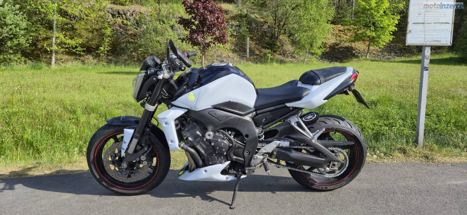 Prodám FZ1n 2010 verze bez ABS,, po výměně oleje, teď nasazená nova zadní guma rosso 3 (neni na foto), řetězovka měněna loni ( najeto cca 600km), v ČR jsem druhý majitel, kupovano od známého, 3x klíč, doplňky ( komplet laděný výfuk MIVV, cnc padáky, kryt pod motor, držák SPZ, miniblinkry, alarm…..) víc info na telefonu. Od konce května stojí v garáží.