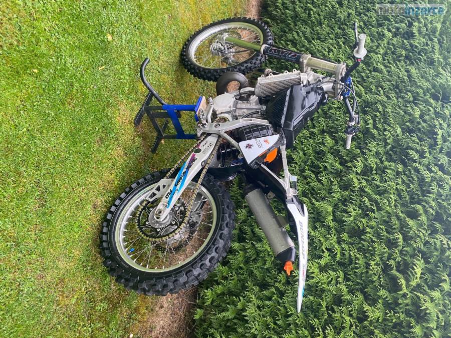 Klemy 28mm s řídítky pro taper, zesílené stupačky, zalamovací páčky, náhradní radička, zesílené duše, pomocník startů, na moto celý kyt Polisport 24 25, nádrž, airbox, sedačka, všechny plasty.