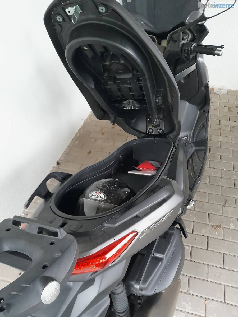 Prodám skútr Yamaha X-Max 400, rok výroby + první registrace 2013, 41700 km, nebouraná, neodřená, pravidelný servis, jasná historie. Originální výfuk Yamaha + výfuk Akrapovič (s homologací), originál plexi + zvýšené plexi Puig, plotna kufru Givi. Krásný, hbitý motocykl. Pod sedlem místo na 2 klasické helmy, přihrádky na klíče a doklady, vývod na snadné nabíjení baterie. Úplně nová baterie (10/2025).