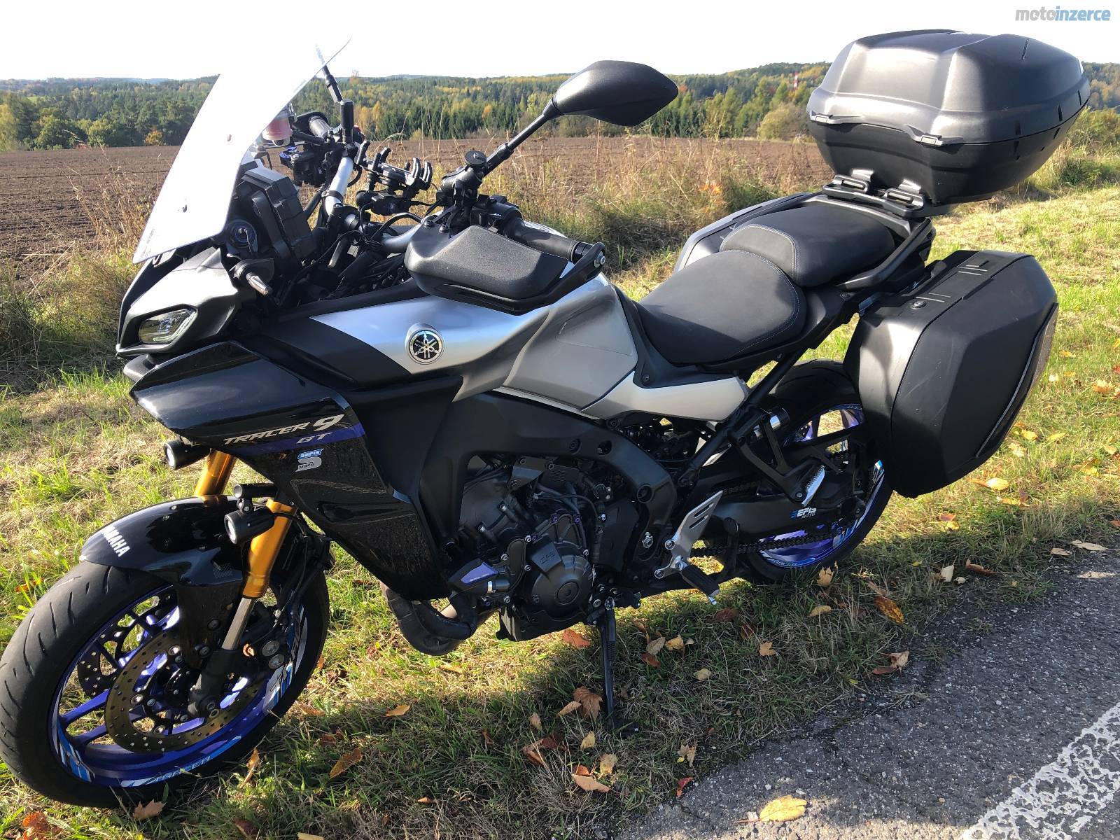 Prodám Yamaha tracer 9 GT-oboustraný quichschifter, boční kufry, zadní kufr (45), vyhřívaný rukojeti, semiaktivní podvozek, nastavení jízdních režimů, přídavné LED světlomety, polepy kol, ochr. mřížka chladiče, zásuvky na USB, sportovní držák SPZ s LED osvětlením, sekvenční ukazatele směru, CNC páčky, protiskluzové chrániče nádrže, al. nádobky na brzdovou kapalinu, přední a zadní padací protektory kol, padací protektory motoru, rolny pro stojan, Tankpad, rozšíření bočního stojanu atd. Dále přidám sklopný pojízdný stojan na zadní kolo + originální náhradní díly