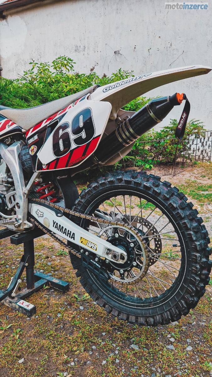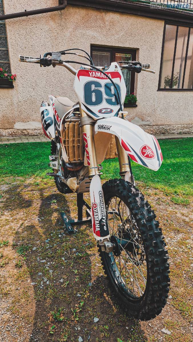 Prodám Yamaha YZ 250 F r.v. 2008. Moto je v top stavu a ježděn: pouze MX tratě. Mnou najeto pouze 10mth. Poslední udaj na motohodinách po posledním ježdění byl 108mth (je to 14 dni co vybila baterka). Jinak ve 35mth kompletní G0 motoru a podvozku v hodnotě cca 30000, (pístní sada, nikasi ojnice, rozvodový řetěz, ložiska v motoru, těsnění motoru, nové obě vačky, repas předních a zadních tlumičů, přepákování atd..) V 65mth další servis u Čepeláka (Kolín) v hodnotě 19000, (pístní sada těsnění, zdvihátka ventilu, vodítko rozvodového řetěze, rozvodový řetěz, vata výfuku, čištění karburátoru ultrazvukem, ložiska v kolech, repas předních a zadních tlumičů atd..). Na 87mth nová řetězová sada. Při 102mth nové Gripy ODi Emig Lock on, lízátko na kyvku (UFO), vodítko řetězu Acerbis, přední kotouč TWR, destičky Mino. Olej a filtr měněn pravidelně po 5mth, ježděno pouze na originál olej Yamalube 4 FS 10W40, vzduchový filtr měněn po každém tréninku (mám 3). Na moto je laděný výfuk DVR i se svodem, lámací páčky a doplňky od ZETA, výstuhy chladičů, veliký kryt pod motorem, K motorce přidám spoustu náhradních dílů (kompletní sada plastů, airbox, svíčky, vzduchové a olejové filtry, pneu atd..