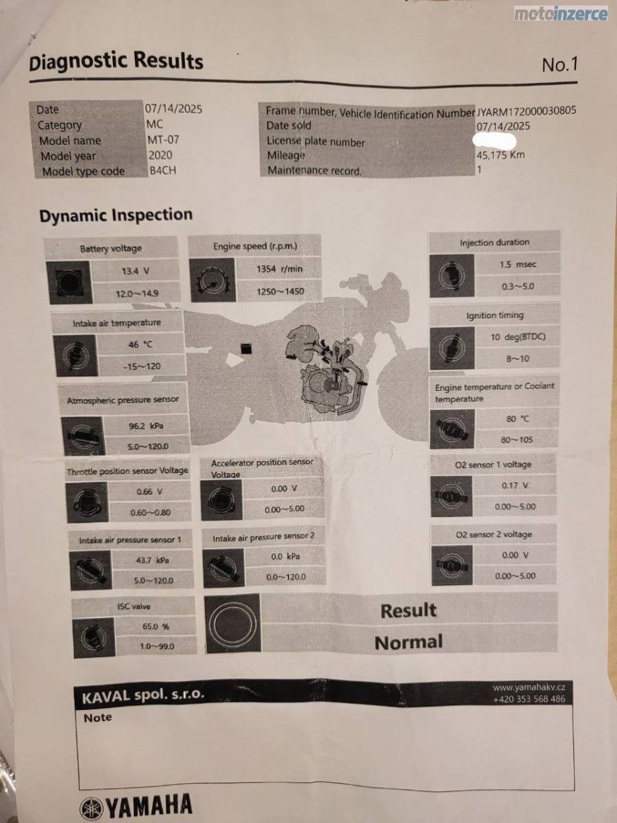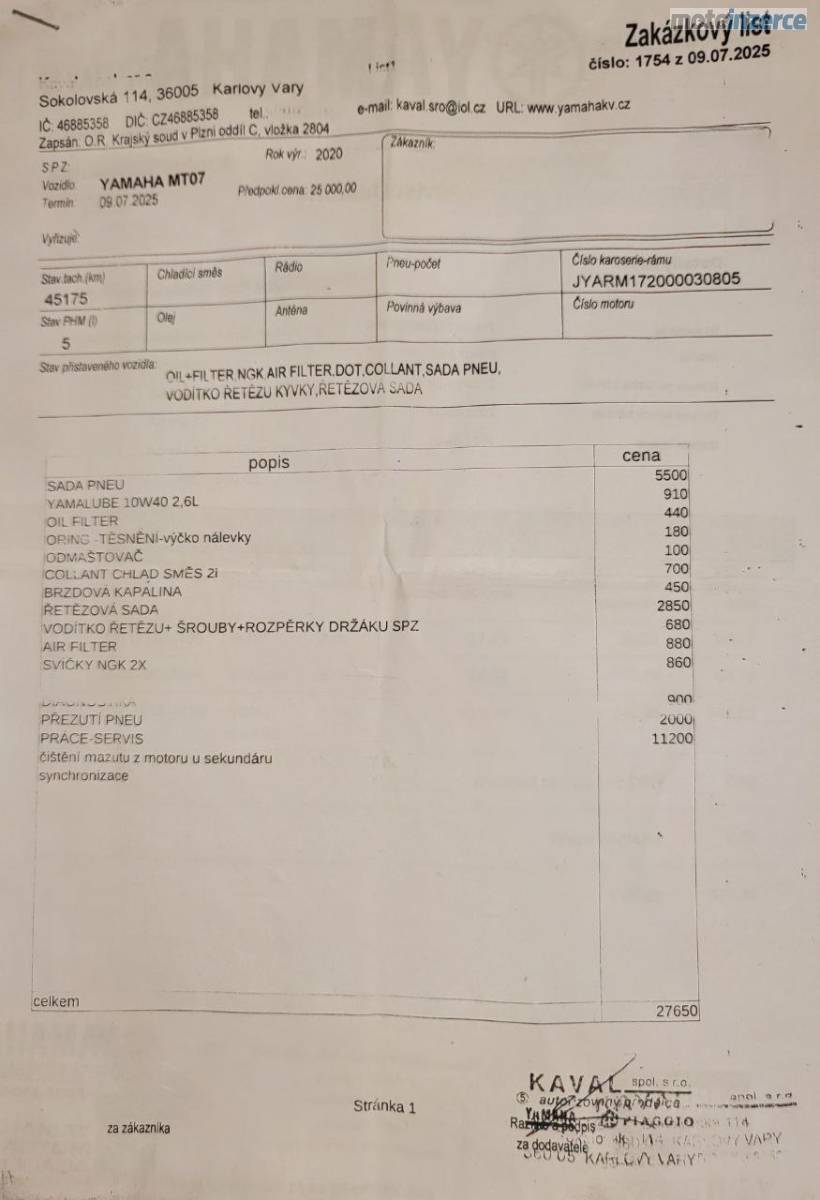 Letos byla motorka na kompletním servisu v Yamaha, vše doloženo fakturami.