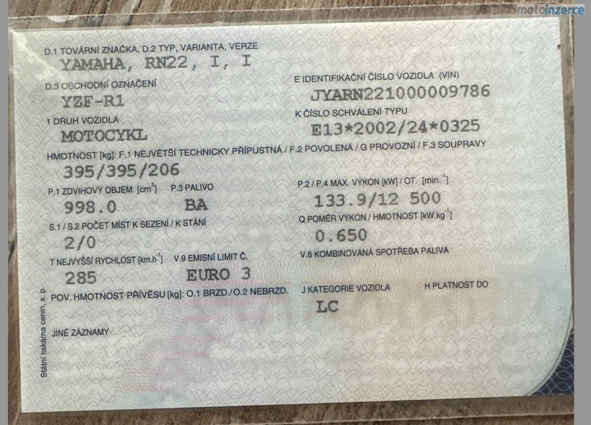 Prodám krásnou, velmi silnou Yamaha YZF R1,
