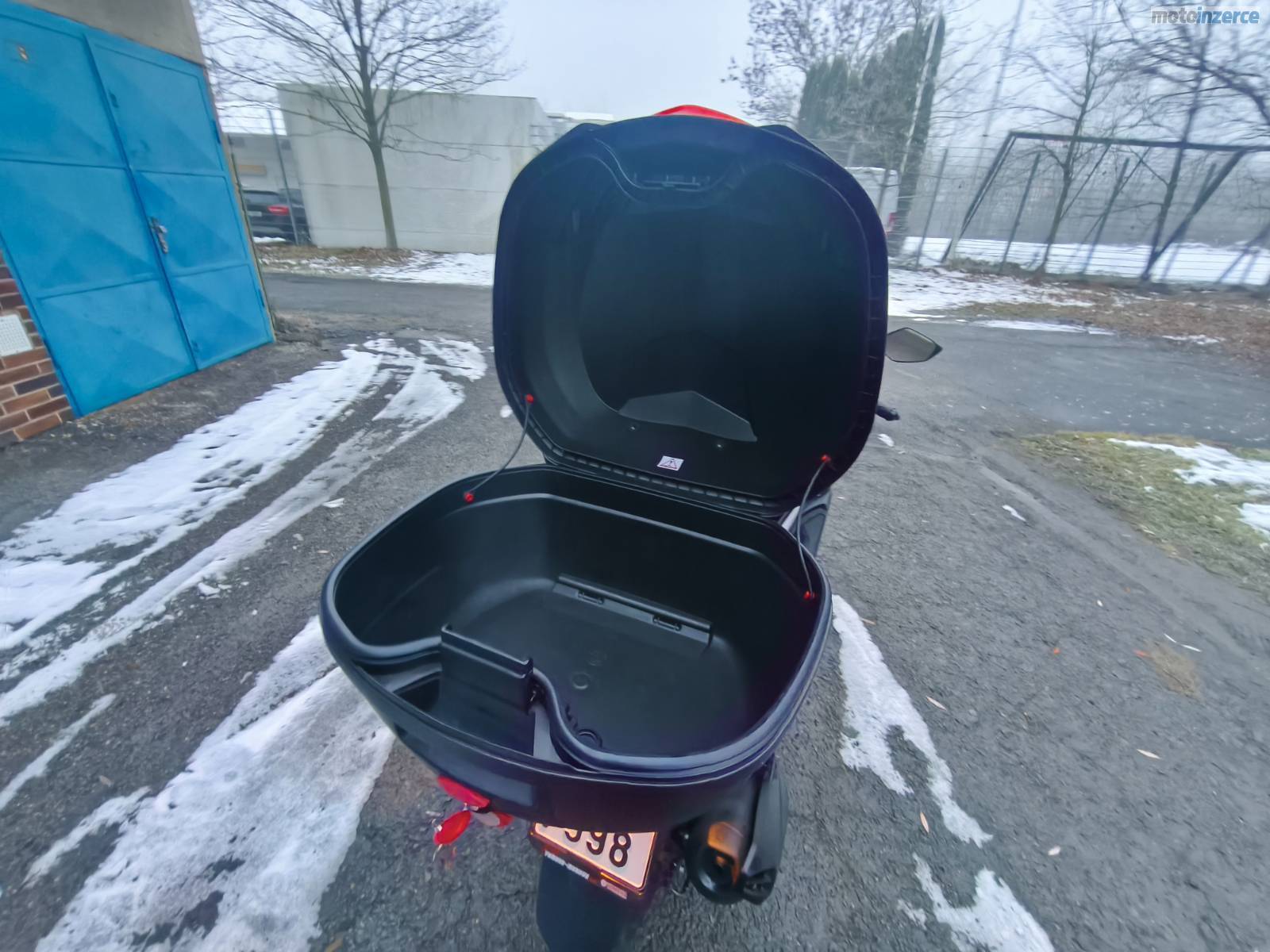 Originální kufr Yamaha na zadku unese nákup, přilbu nebo tři rohlíky a termosku.