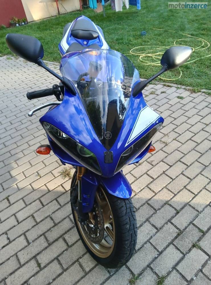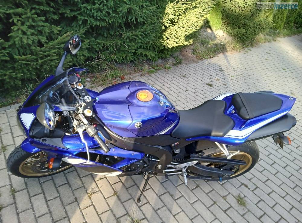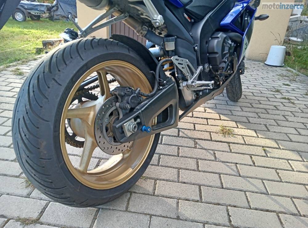 Yamaha R1. Nízký nájezd občasné sezónní projíďky po regionu, celkově minimální opotřebení, obutí Michelin Pilot.