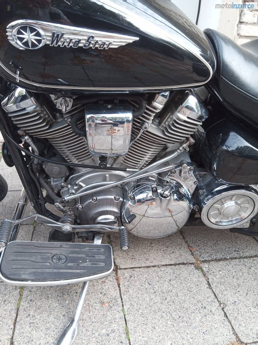 Prodám Yamaha Wildstar 1600XV vcelkově dobrém stavu. Dovoz Německo nyní první majitel v ČR. Spousta doplňků, plexi, padáky, opěrka zadního sedadla, nosič. Dvoje klíče. Nová baterie. Pneu 85%. Nové brzdy. Pravidelný servis. Najeto 95000km