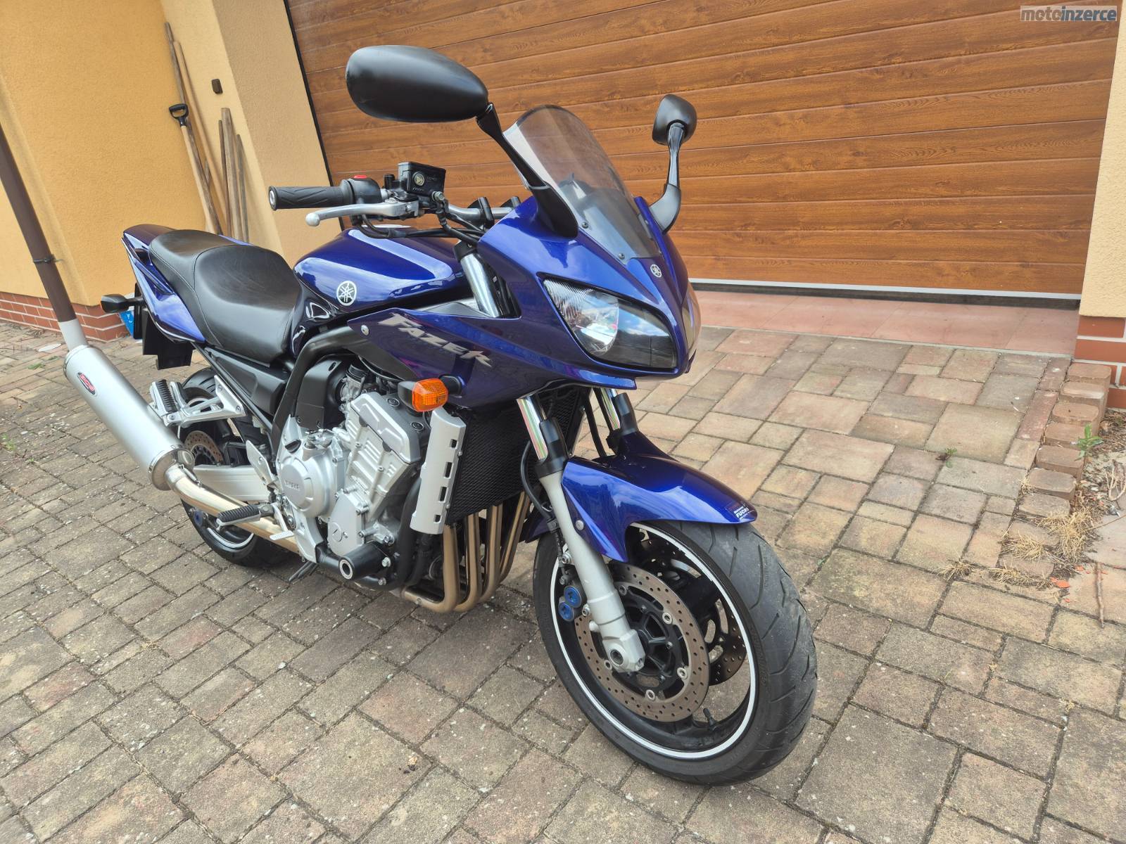 Prodám motocykl Yamaha Fazer FZS 1000 v pěkném udržovaném stavu rok 2004 najeto 30000 km výkon 105 kW, laďený homologovany výfuk, padáky, 2x klíč + přidám nosič s plotnou monokey na centrální kufr