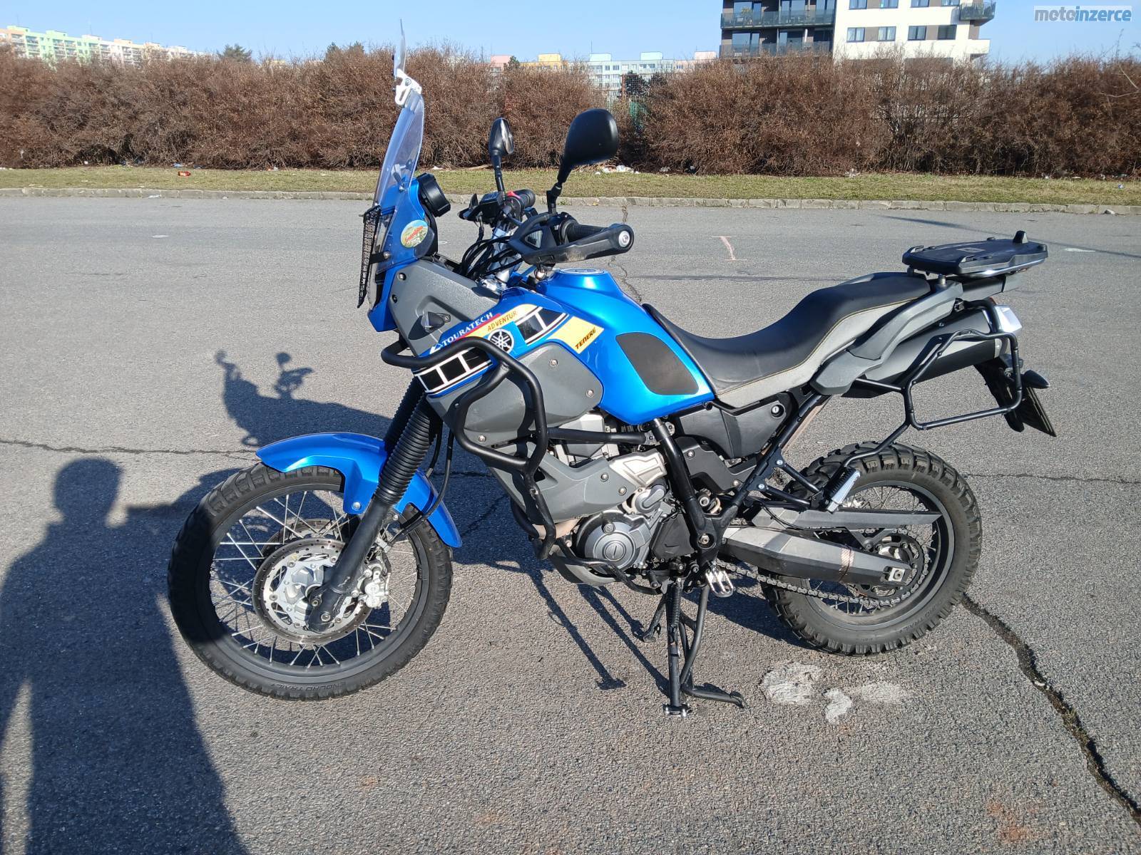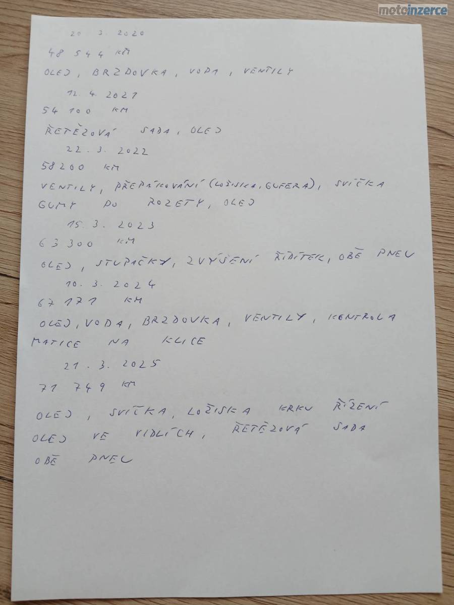 Prodám Yamaha XT660Z Tenere r.v. 2012, najeto 76306 km,. Moto vlastním 6let a najel jsem s ní necelých 28000 km. Na motorce byl vždy proveden pravidelný servis, olej každý rok a vše co bylo potřeba. Poslední servis před 5500 km – olej ve vidlích, ložiska krku řízení, řetězová sada, přední i zadní pneu, olej, filtry a svíčka. Na motorce je spousta doplňků – zvýšení řídítek, zásuvka 12V, vyhřívané hefty, široké stupačky, mazání řetězu, rozšíření stojánku, centrální stojan, padáky, 3x kufr. Na moto se najde nějaká ta kosmetika, je to přece jen Enduro.